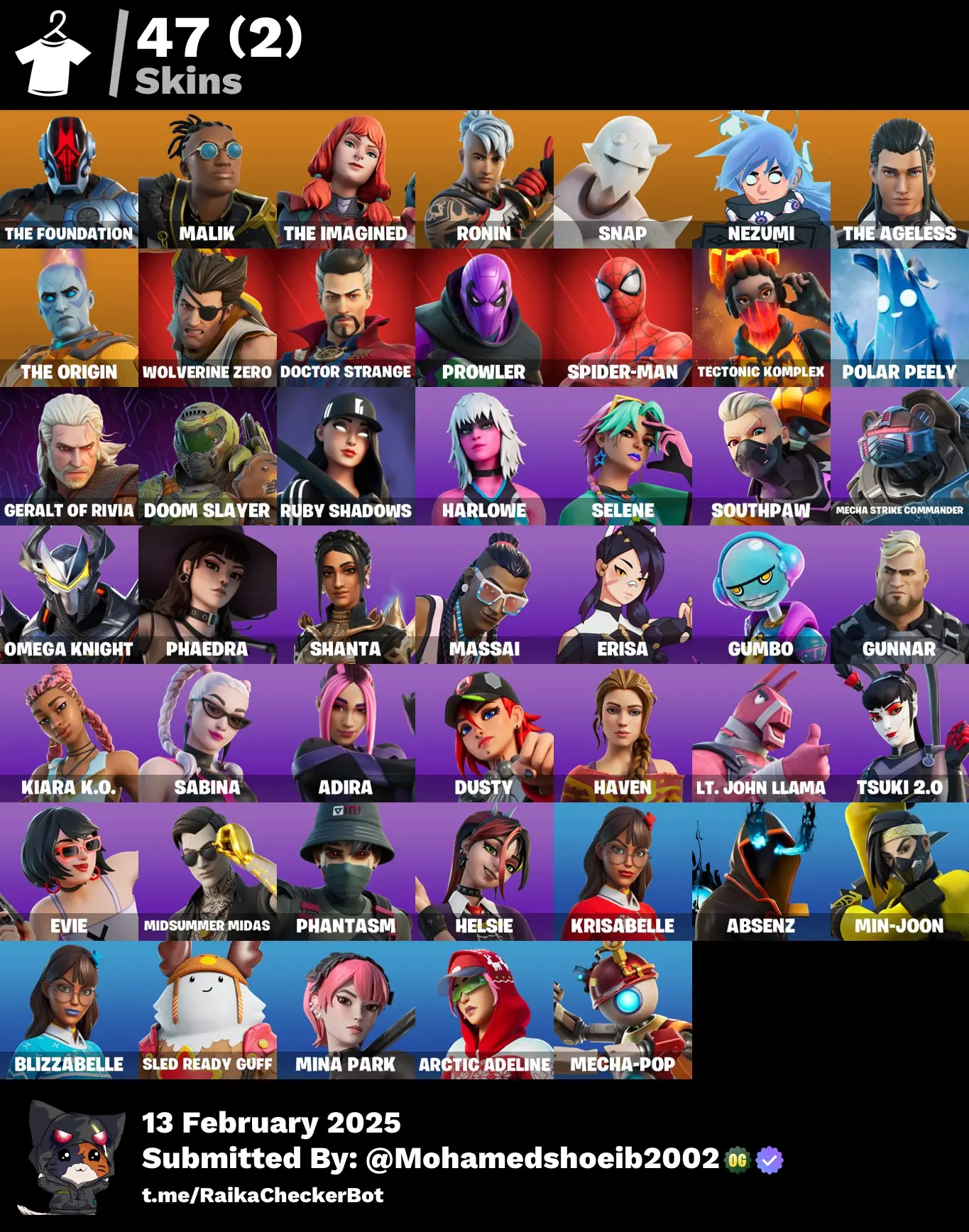 [PC/PSN/XBOX] 47 skins | The Foundation | Malik | The Imagined | Ronin | Snap | Nezumi | The Ageless | The Origin | Wolverine Zero | Doctor Strange | Prowler | 500 VB