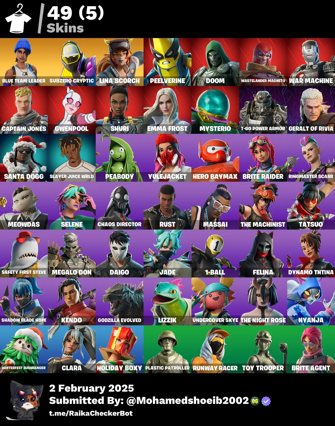 [PC/PSN/XBOX] 49 skins | Blue Team Leader | Subzero Cryptic | Lina Scorch | Peelverine | Doom | Wastelander Magneto | War Machine | Captain Jones | Gwenpool | 1300 VB