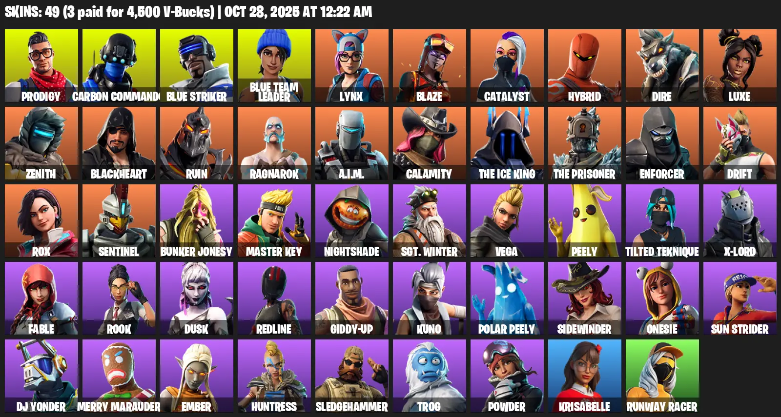 [PC/PSN/XBOX] | 49 skins | Prodigy | Carbon Commando | Blue Striker | Blue Team Leader | Lynx | Blaze | Catalyst | Hybrid | Dire | #WHZ8007 | #MBFN