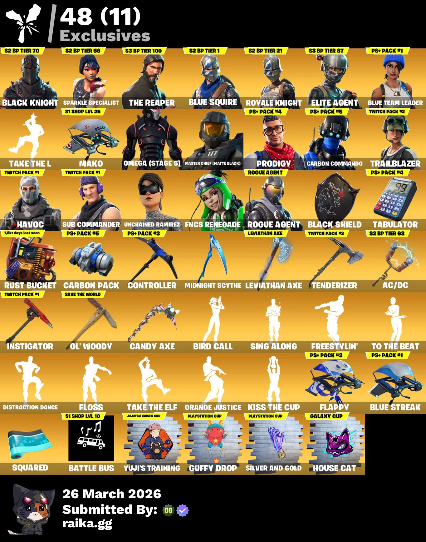 [PC/PSN/XBOX] 491 skins | Renegade Raider | Black Knight | Sparkle Specialist | The Reaper | Blue Squire | Royale Knight | Elite Agent | Leviathan Axe | 1050 VB