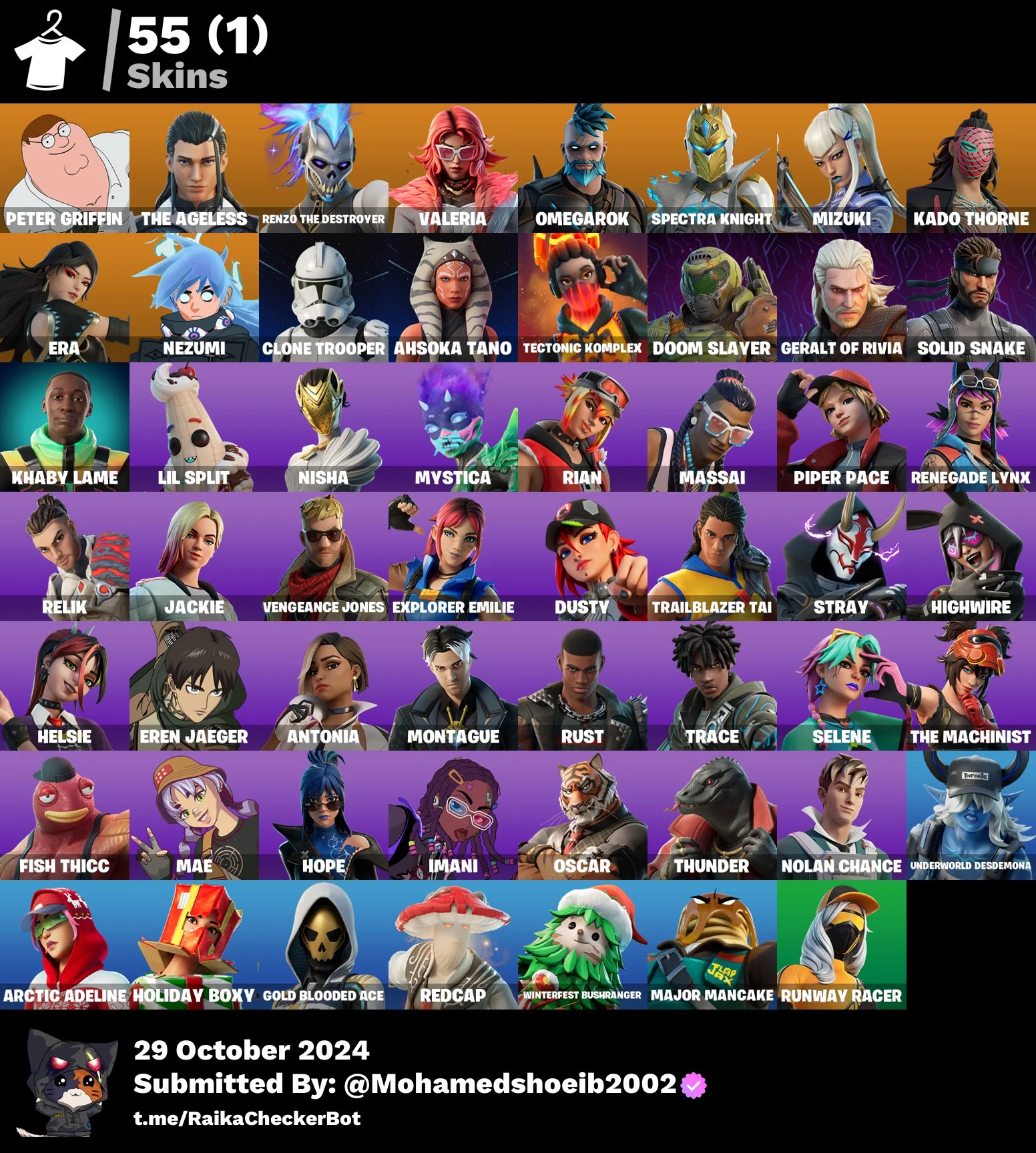 [PC/PSN/XBOX] 55 skins | Peter Griffin | The Ageless | Renzo the Destroyer | Valeria | Omegarok | Spectra Knight | Mizuki | Kado Thorne | Era | Nezumi | 650 VB