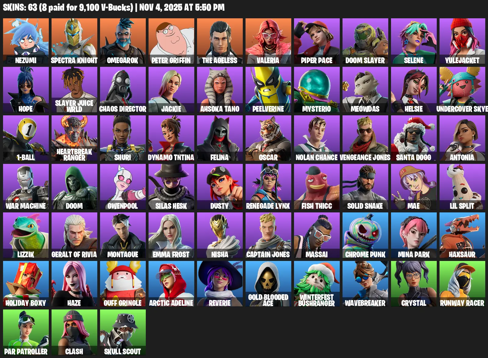 π¨ [PC/PSN/XBOX] π 63 skins | Nezumi , Spectra Knight , Omegarok , The Ageless , Doom Slayer , Ahsoka Tano , Doom , Geralt of Rivia , Emma Frost | π 750 VBUCKS | βοΈ Changeable Email Now