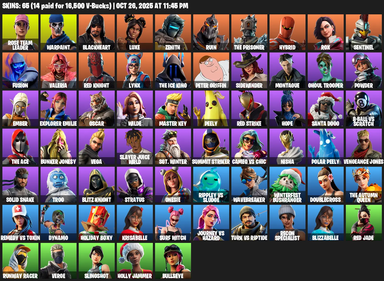 [PC/PSN/XBOX] | 65 skins | OG STW | Rose Team Leader | Warpaint | Blackheart | Luxe | Zenith | Ruin | The Prisoner | Hybrid | Rox | #PJR6455 | #MBFN