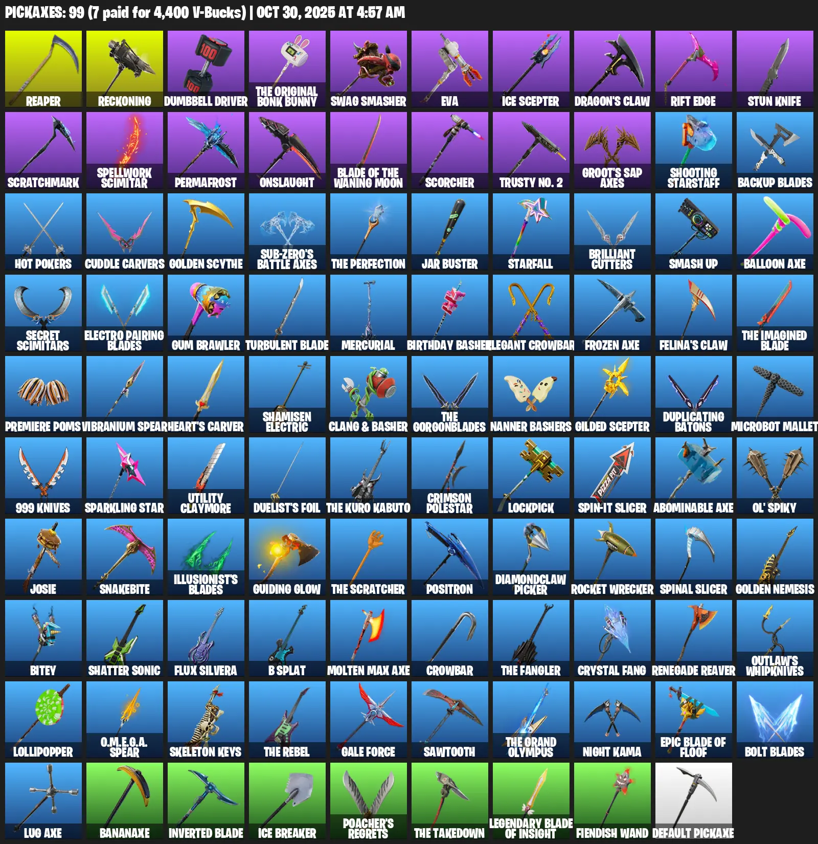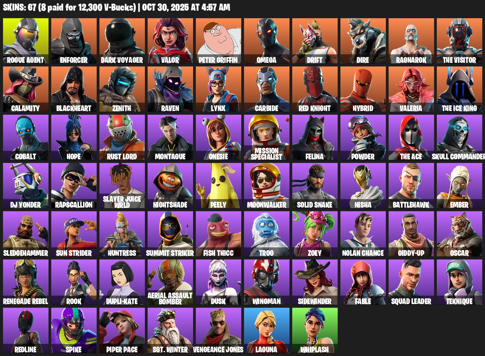 [PC/PSN/XBOX] | 67 skins | 1850 V-bucks | Take The L | Omega | Reaper Axe | Rogue Agent | Enforcer | Dark Voyager | Valor | #WJC4091 | #MBFN
