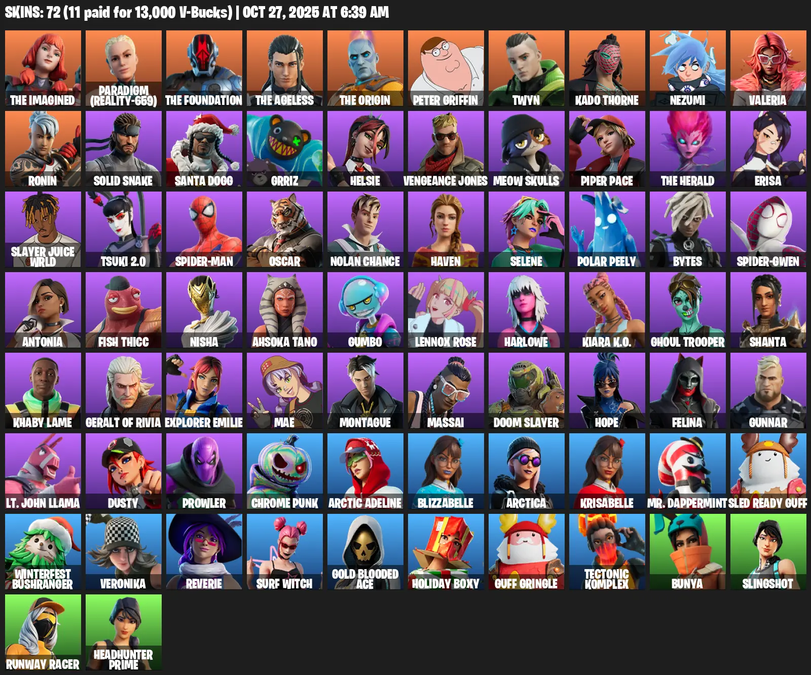 [PC/PSN/XBOX] | 72 skins | The Imagined | Paradigm (Reality-659) | The Foundation | The Ageless | The Origin | Peter Griffin | Twyn | #XHK3637 | #MBFN