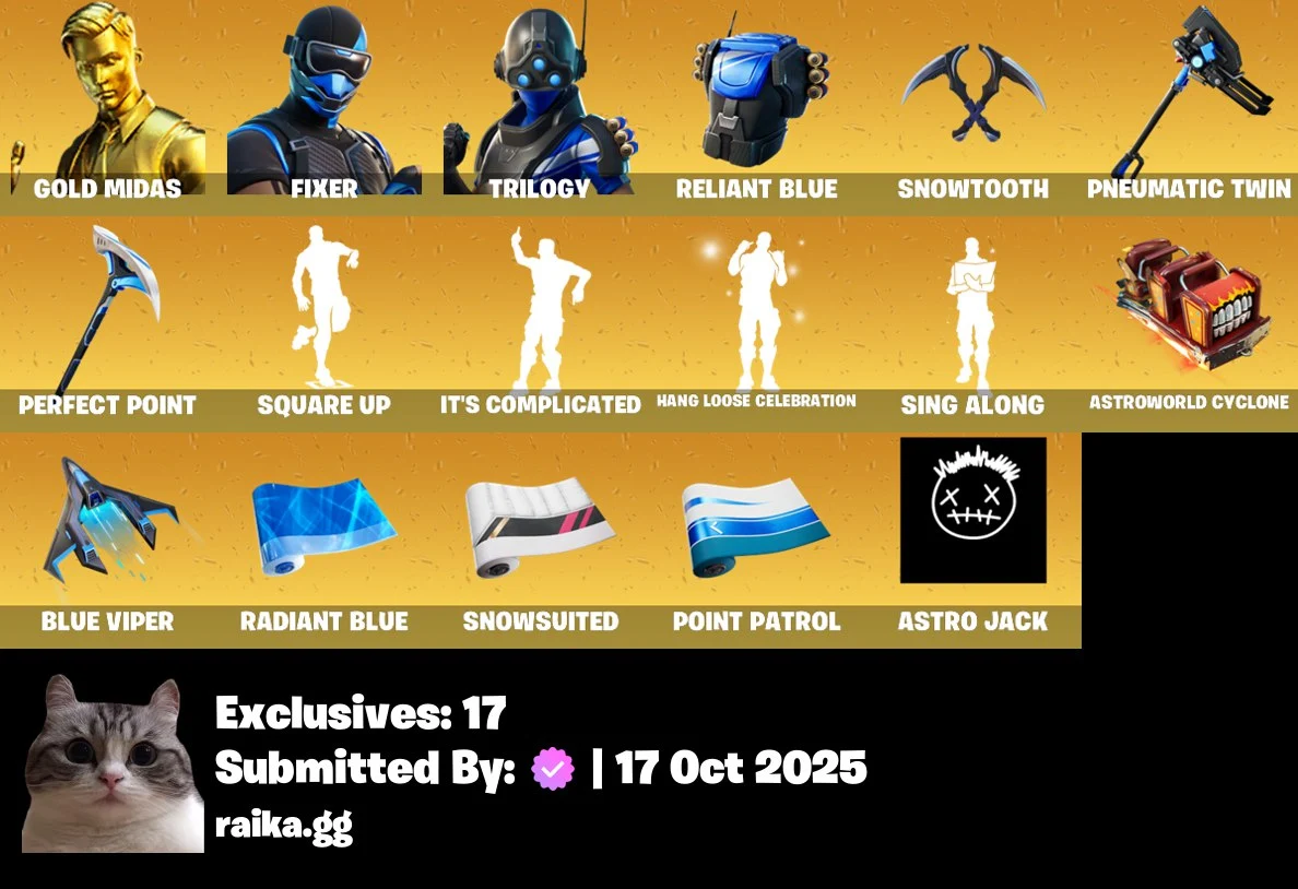 [PC/PSN/XBOX] 74 skins | Gold Midas | Fixer | Trilogy | Droopy | Sandstone Joey | Challenger Menace ⸱ Flame | XEV | HAT ⸱ DARK | Spire Assassin | Roni