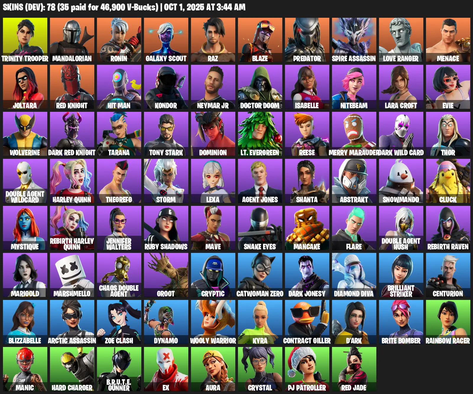 [PC/PSN/XBOX] | 78 skins | Leviathan Axe | Lara Croft | Trinity Trooper | Mandalorian | Ronin | Galaxy Scout | Raz | Blaze | Predator | S4G