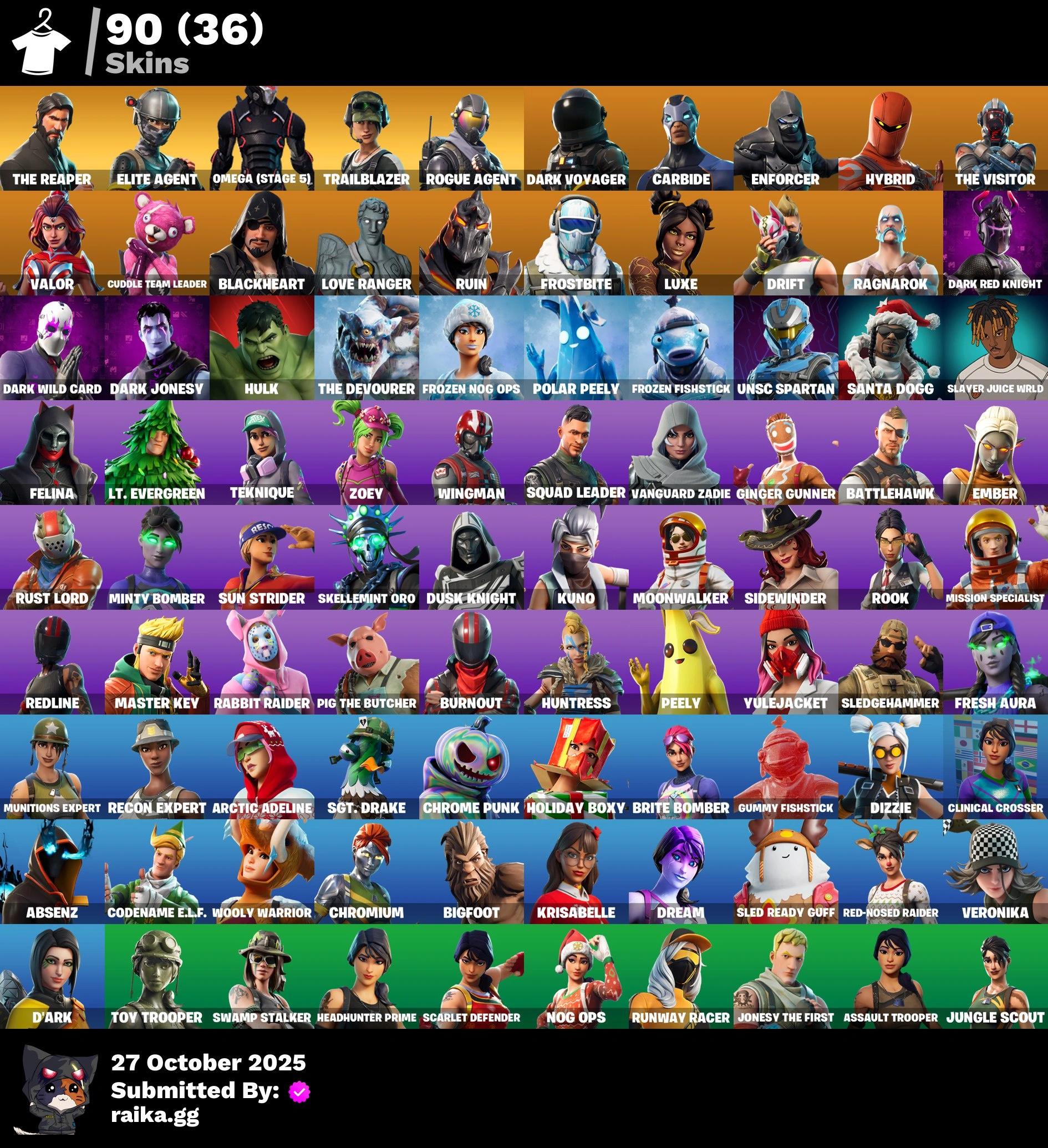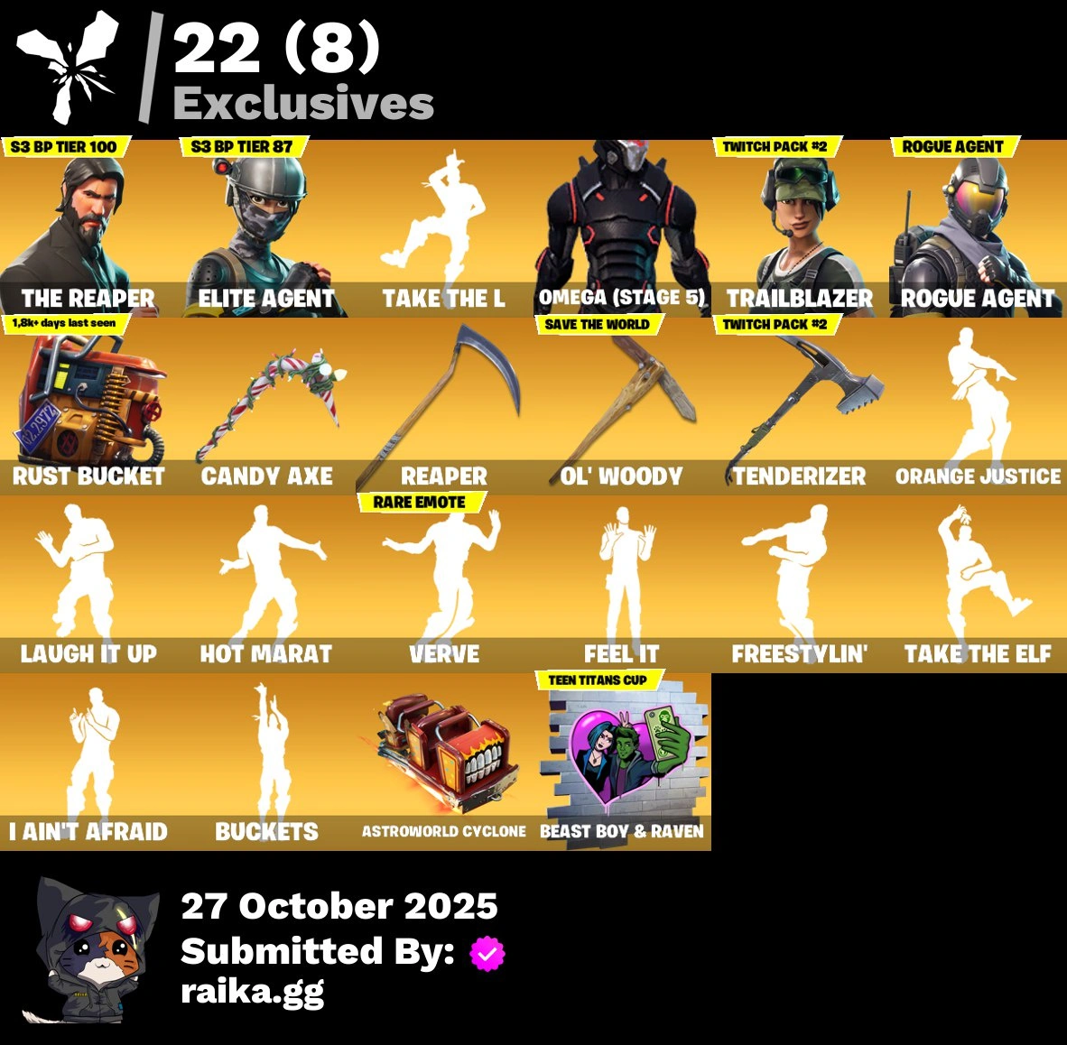 [PC/PSN/XBOX] 90 skins | Candy Axe | Take The L | The Reaper | Elite Agent | Omega (stage 5) | Trailblazer | Rogue Agent | Dark Voyager | Carbide | Enforcer | Hybrid | The Visitor | 100 VB