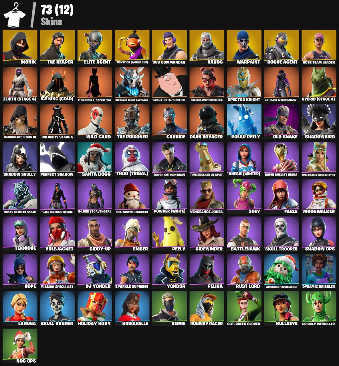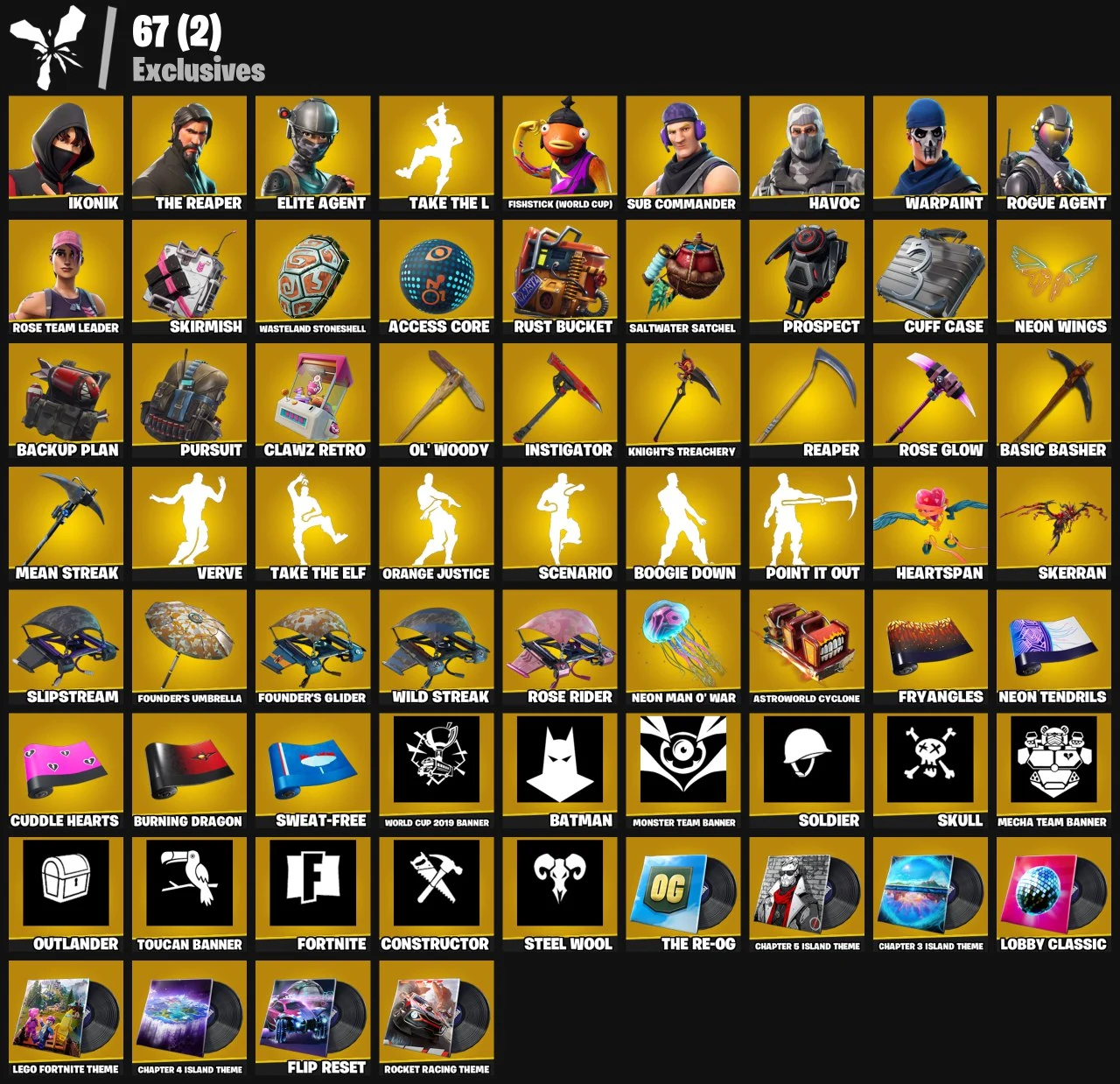 ⭕PC/PSN/XBOX⭕73 Skins + IKONIK + The Reaper + Take The L + Elite Agent + OG Save The World + Rogue Agent + Calamity + World Cup Fishstick + LAGUNA + Orange Justice + Sub-Commander + Havoc | 3,500 V-Bucks