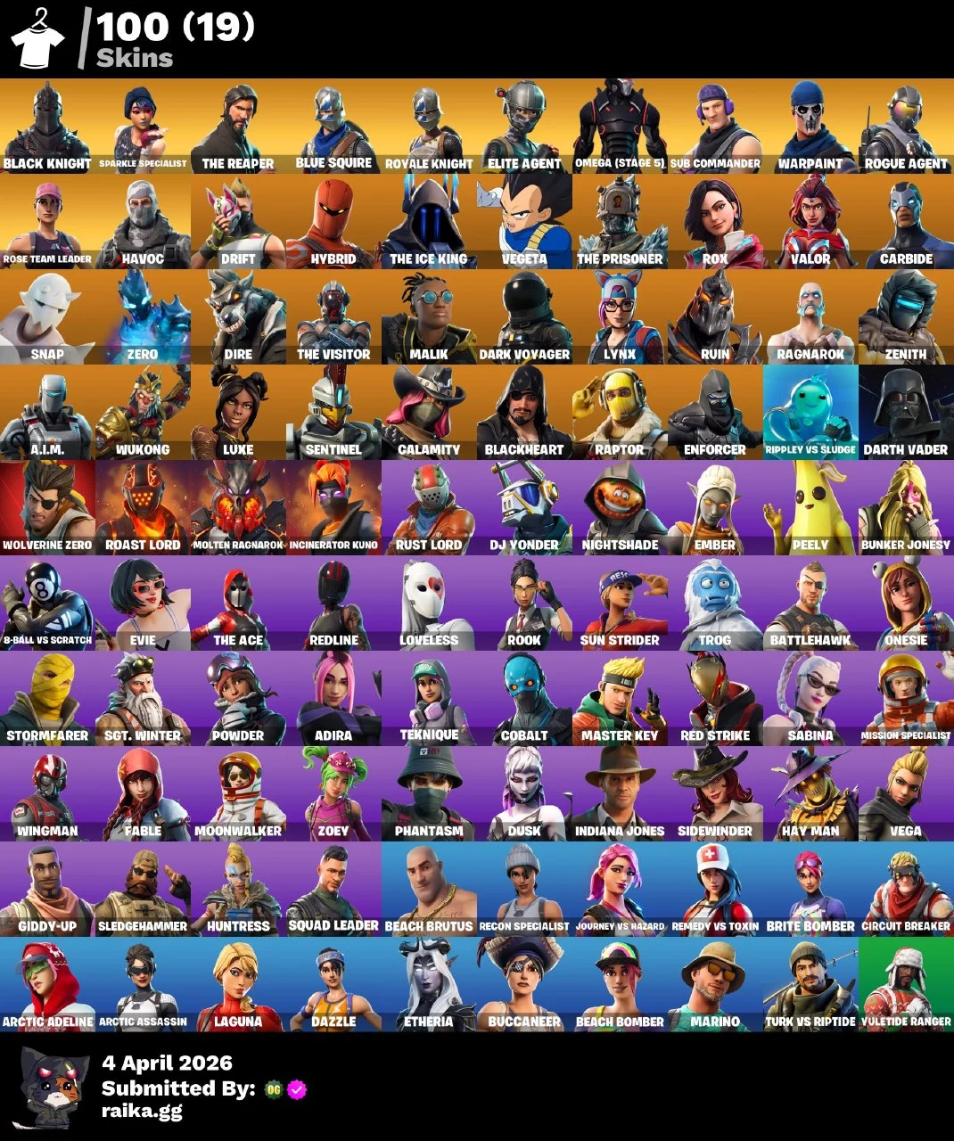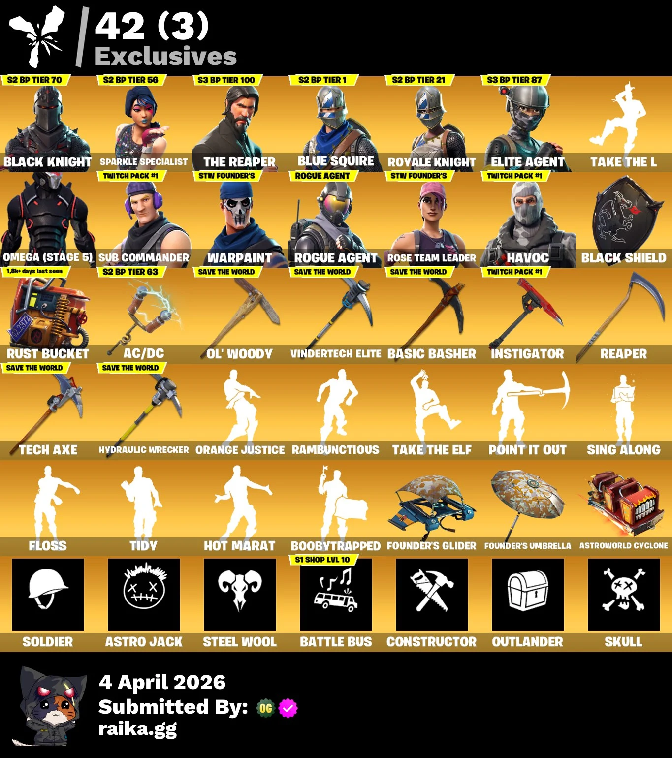 PC/PSN/Xbox/Nintendo 100 skins | OG STW | Black Knight | Sparkle Specialist | The Reaper | Blue Squire | Royale Knight | Elite Agent | Omega (stage 5) | Sub Commander | 400 VB