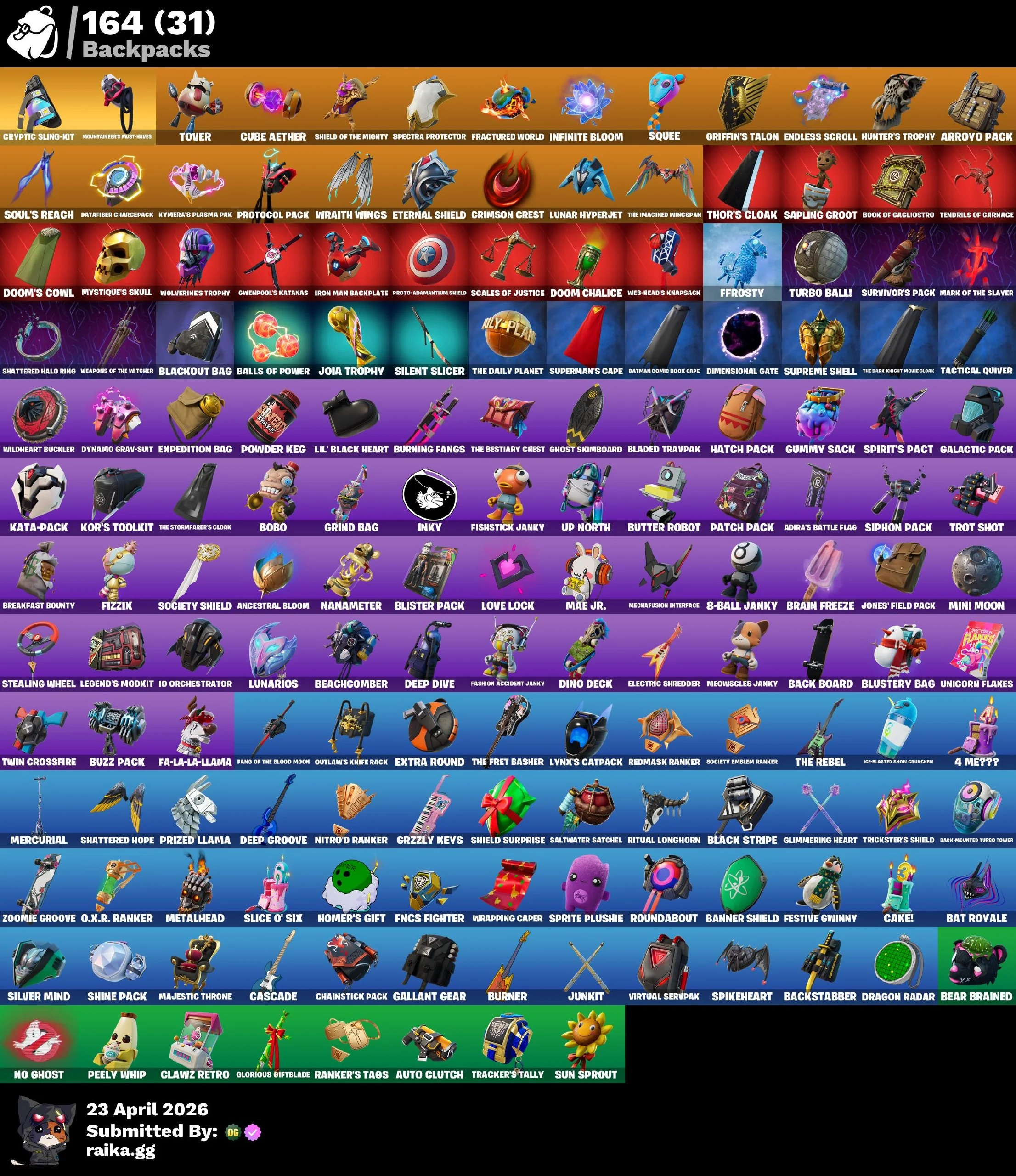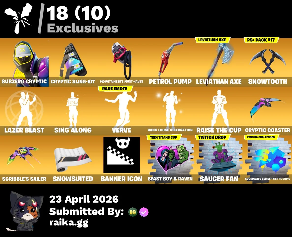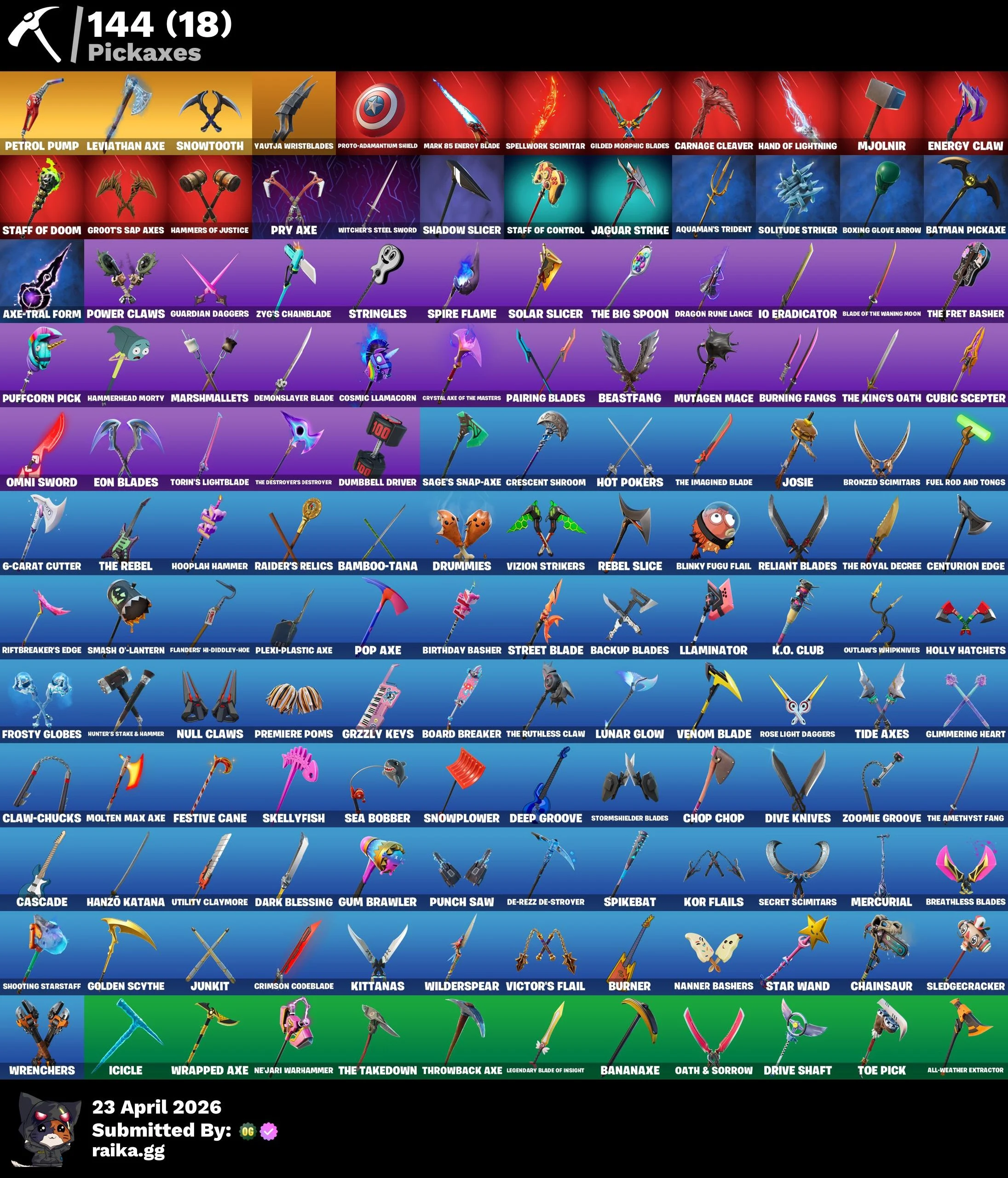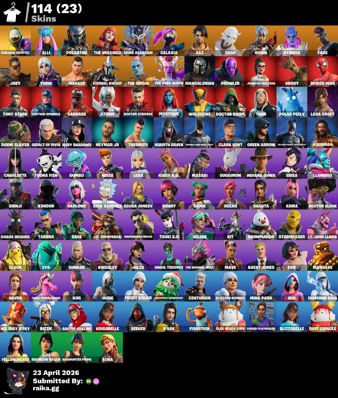 [PC/PSN/XBOX/Nintendo] 114 skins F/A : Leviathan Axe | Subzero Cryptic | Snap | Menace | The Imagined | Galaxia | Alli | Fade | Raz | Kymera | Ronin | The Origin | Joey | Torin