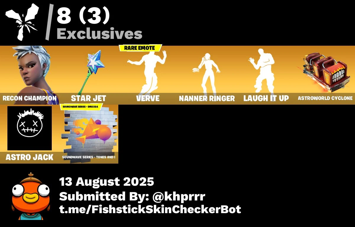 [PC/PSN/XBOX/Nintendo] 147 skins F/A : | Recon Champion | Star Jet | Verve | Nanner Ringer | Laugh It Up | Astroworld Cyclone | Astro Jack | The Foundation | Fade