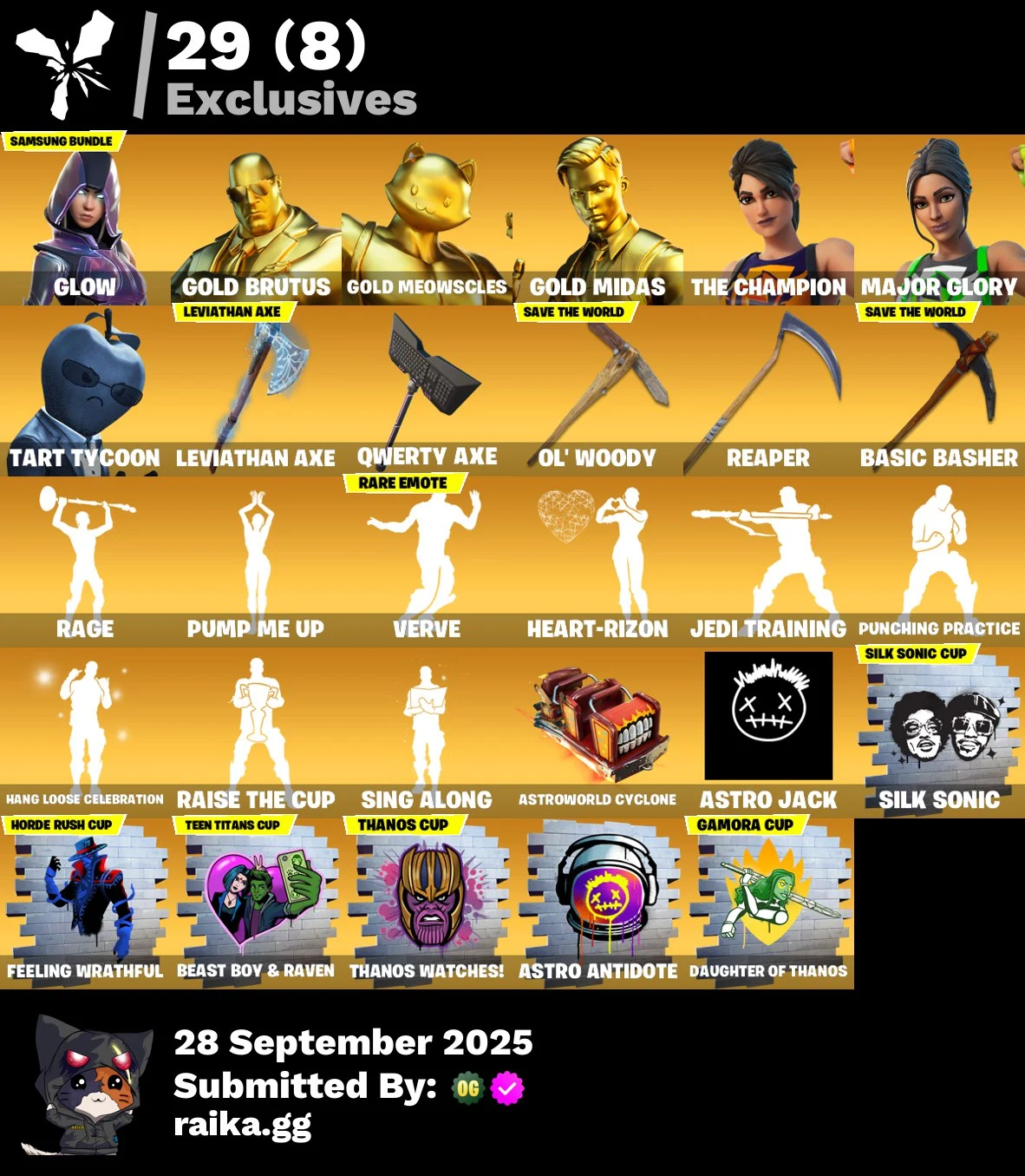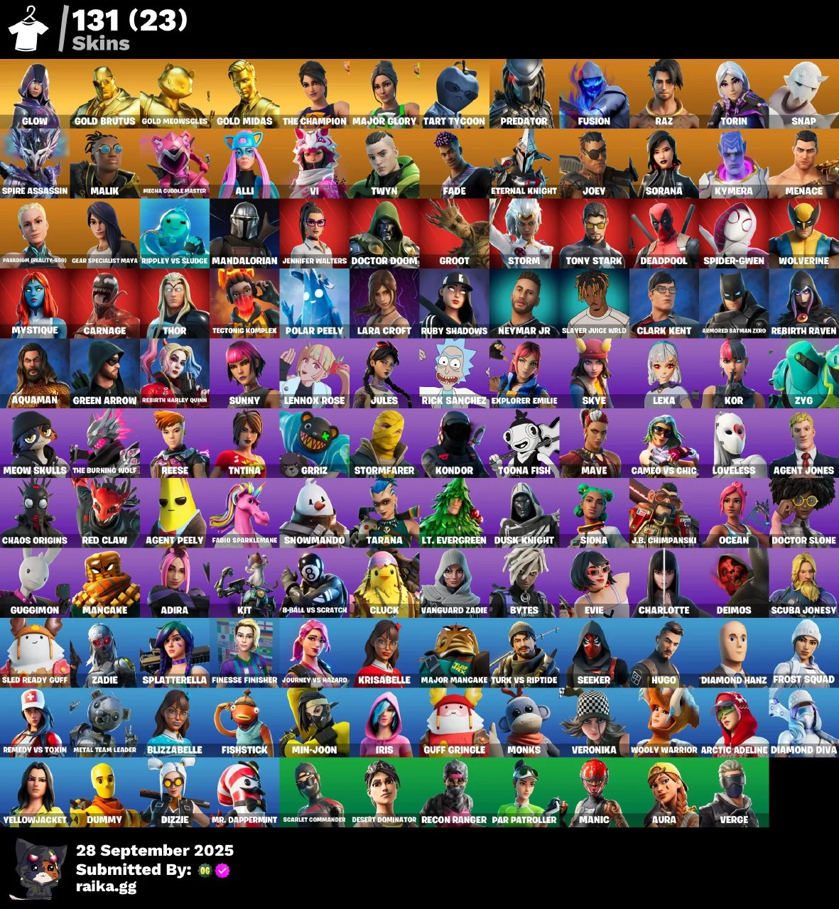 PC/PSN/Xbox/Nintendo 54 skins | The Reaper | Elite Agent | Omega (stage 5) | Blue Striker | Valor | The Visitor | Omegarok | Red Knight | Drift | Blackheart | 350 VB