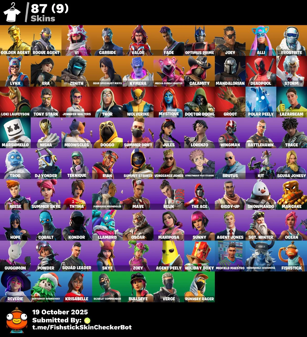 [PC/PSN/XBOX/NINTENDO] 87 skins | Gold Midas | Rogue Agent | Vi | Carbide | Valor | Fade | Optimus Prime | Joey | Alli | Frostbite | Lynx | Era | Zenith | 100 VB