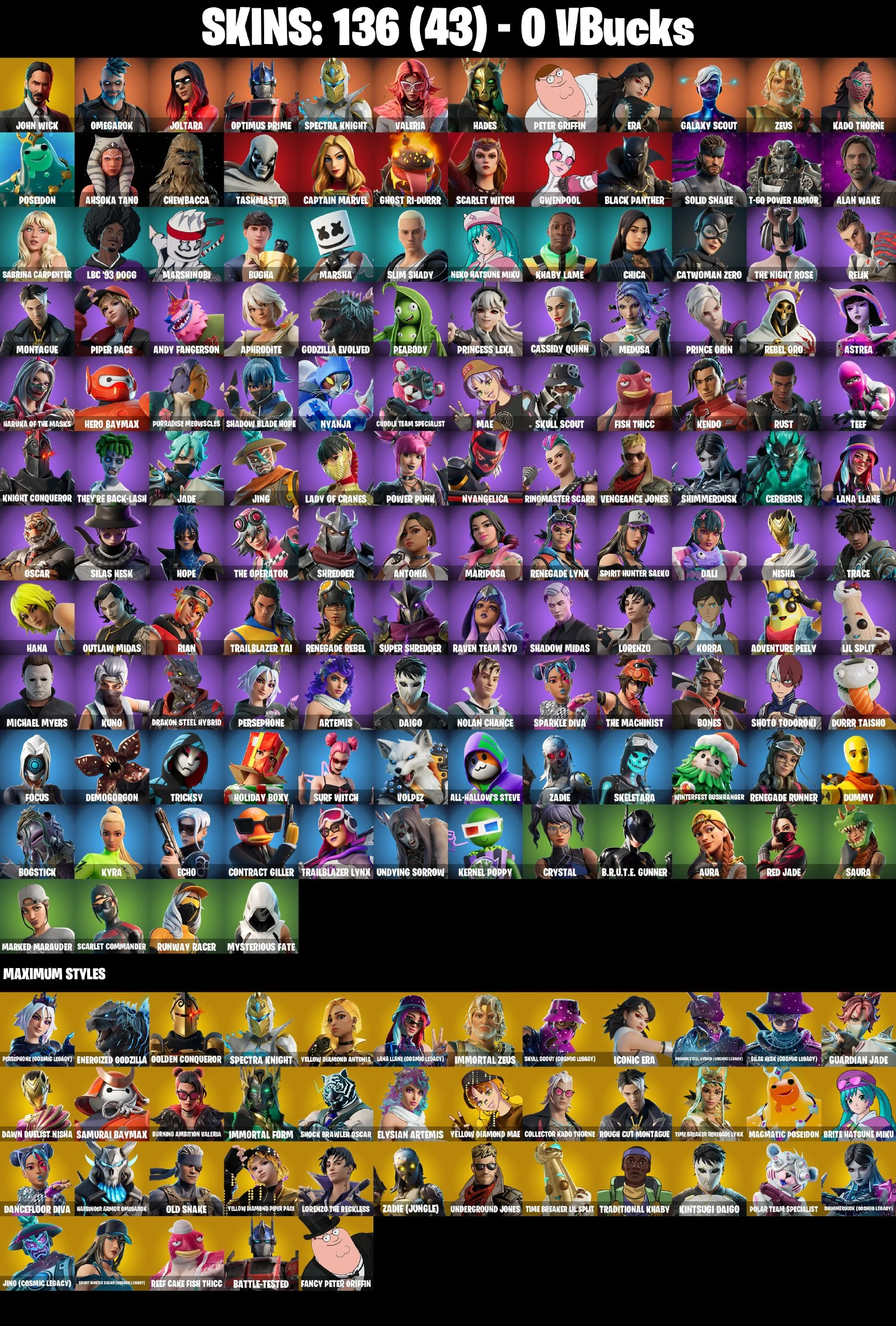β [PC/PSN/XBOX/NINTENDO/MOBILE] 136 SKINS | JOHN WICK | JOLTARA | MOON KNIGHT | GALAXY SCOUT | CHEWBACCA | CAPTAIN MARVEL | TASKMASTER | GHOST RI-DURRR | SCARLET WITCH | BLACK PANTHER | CATWOMAN ZERO | SLIM SHADY | NEKO HATSUNE MIKU | 0 VBUCKS | EMAIL