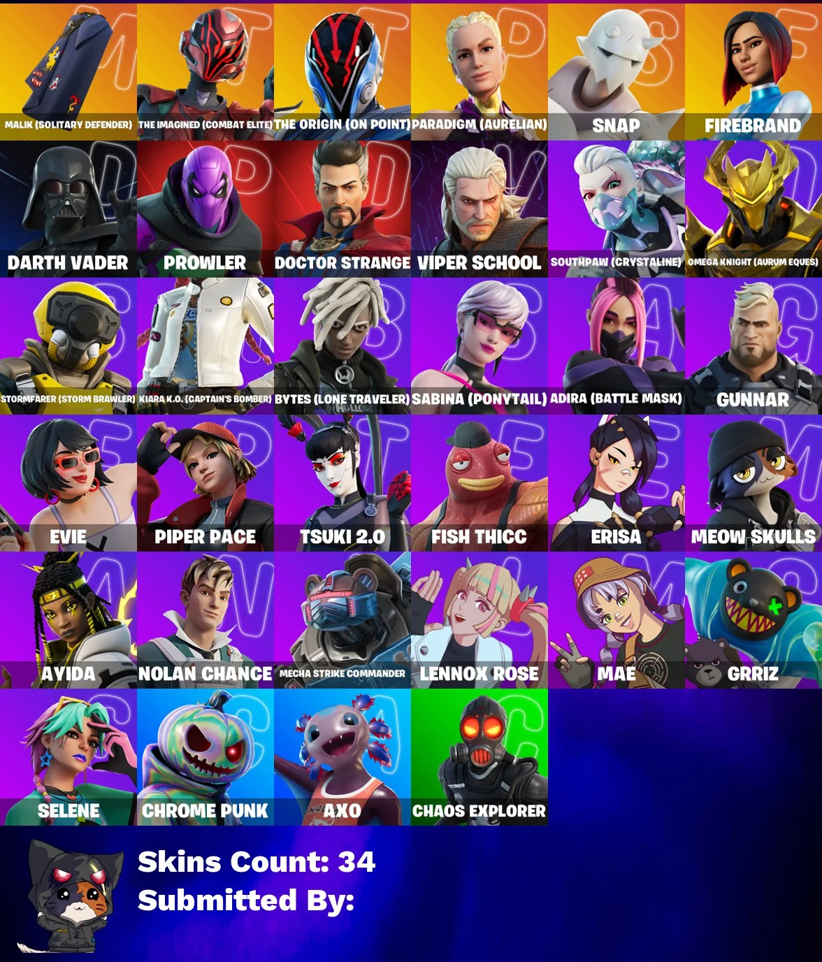 ⭐ [PC/PSN/XBOX/NINTENDO/MOBILE] 🎮 34 SKINS 🔥 MALIK (SOLITARY DEFENDER) 💎 THE IMAGINED (COMBAT ELITE) 🏆 THE ORIGIN (ON POINT) ✨ PARADIGM (AURELIAN) 🎁 SNAP 🌟 FIREBRAND ⭐ DARTH VADER 🔮 PROWLER 🌀 DOCTOR STRANGE 💰 0 VBUCKS 🛡️ FULL EMAIL ACCESS