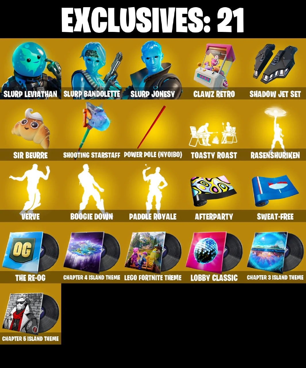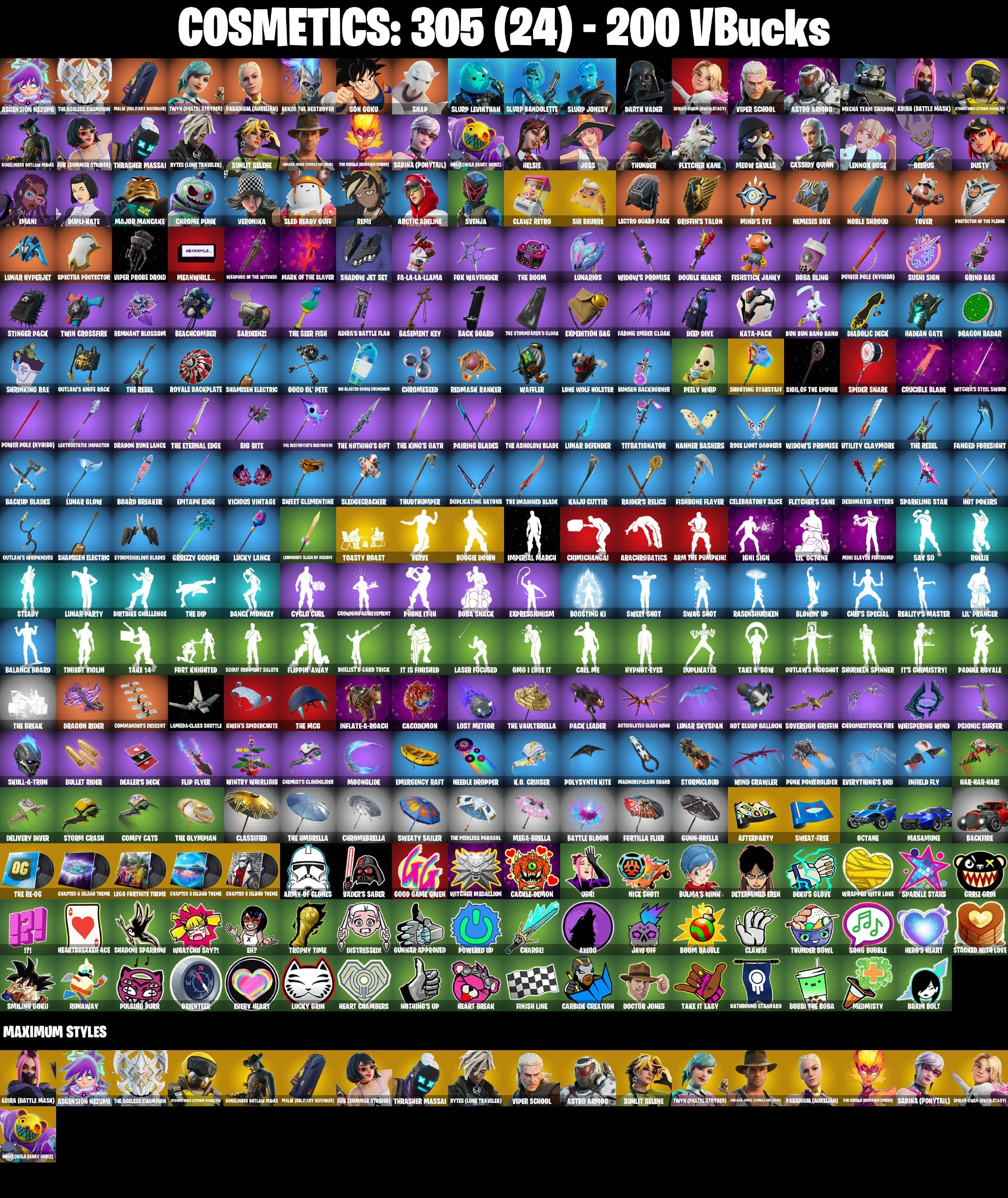 ⭐ [PC/PSN/XBOX/NINTENDO/MOBILE] 🎮 45 SKINS ⚔️ XANDER 🐉 SON GOKU 💠 SNAP 💧 SLURP LEVIATHAN 🔥 SLURP BANDOLETTE 🌟 SLURP JONESY 🛡️ DARTH VADER 🕸️ SPIDER-GWEN (GWEN STACY) 🐍 VIPER SCHOOL 👑 ASTRO ARMOR 🤖 MECHA TEAM SHADOW ✨ ADIRA (BATTLE MASK)