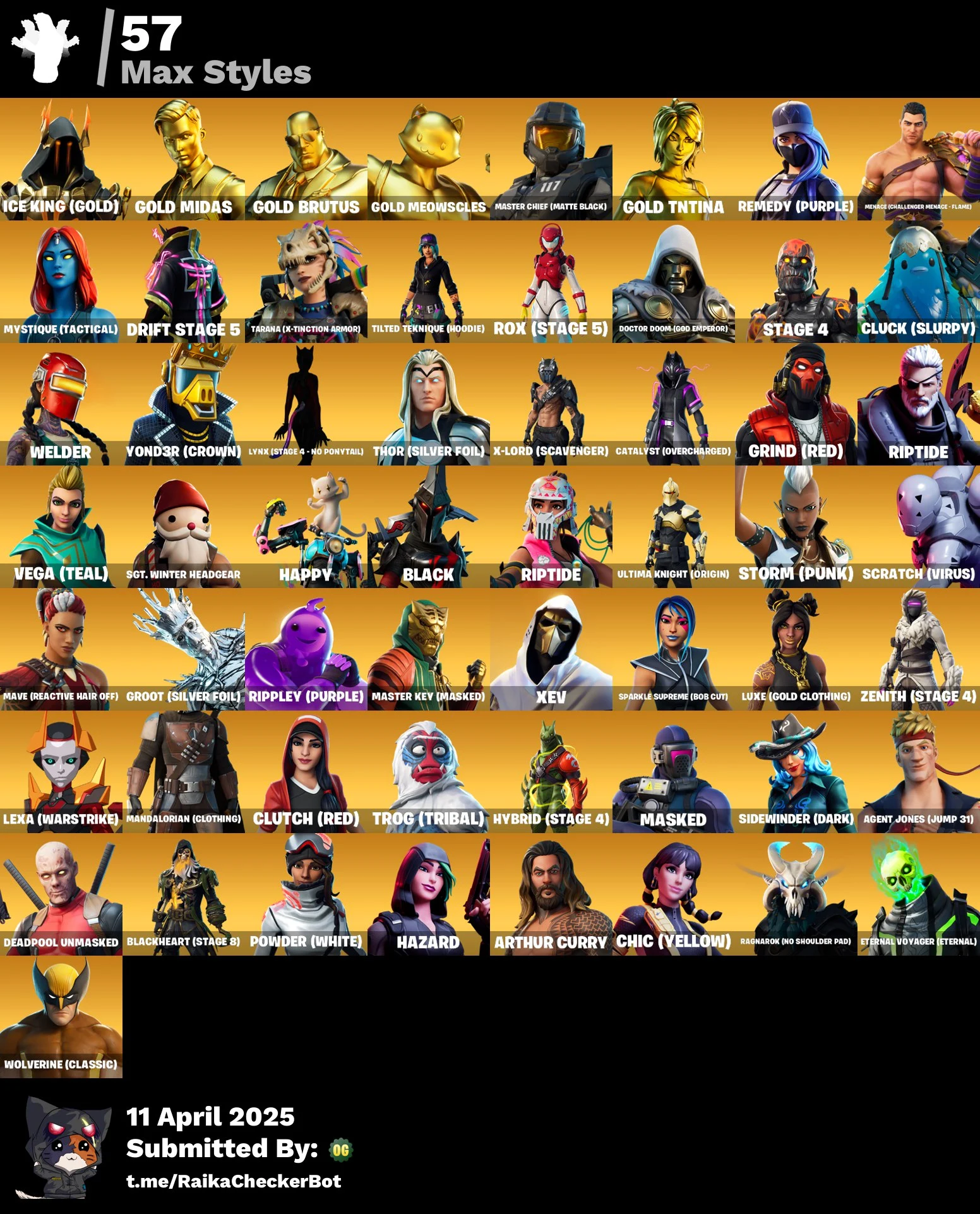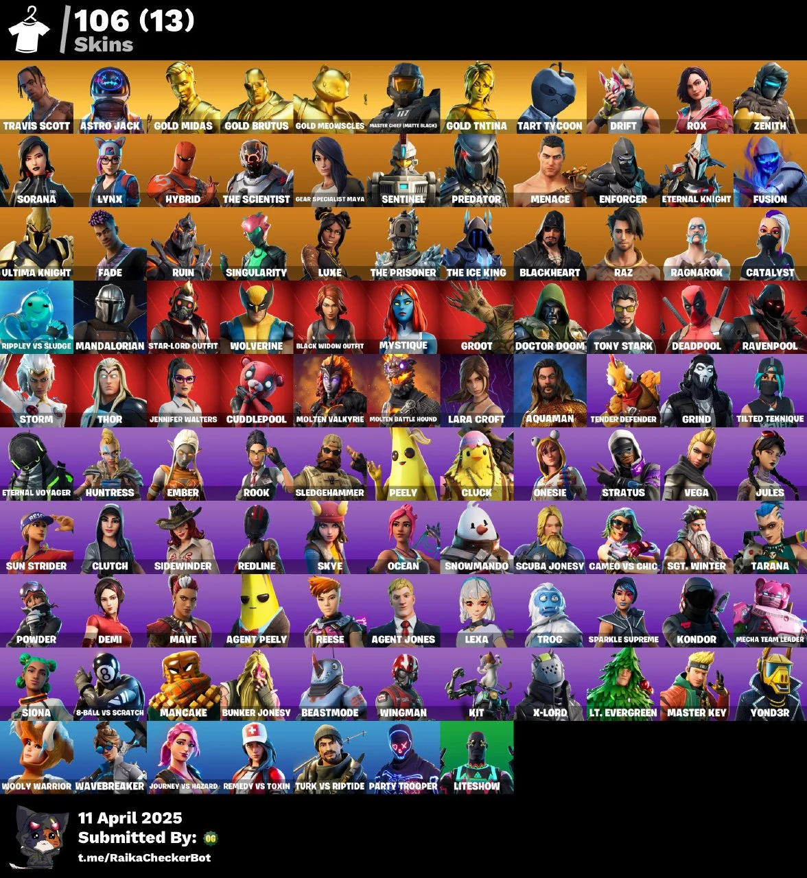 [PC/PSN/XBOX/SWITCH] 106 Skins | Travis Scott | Astro Jack | Gold Midas | Master Chief (Matte Black) | Tart Tycoon | 700 VB | Email Changeable