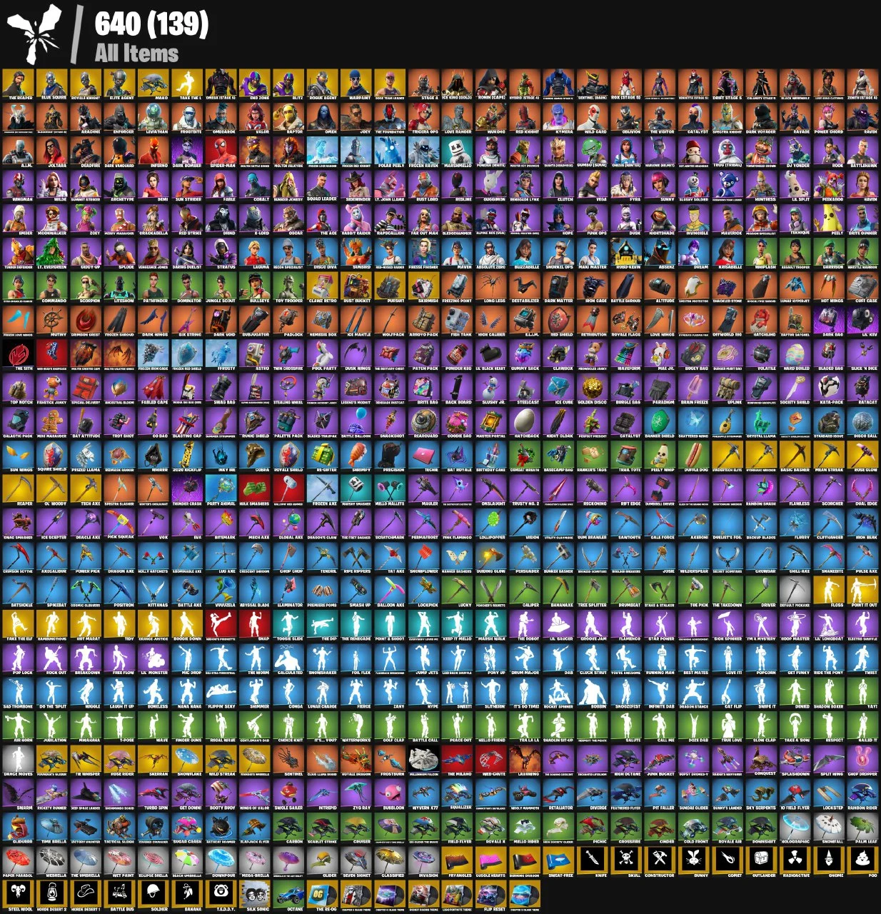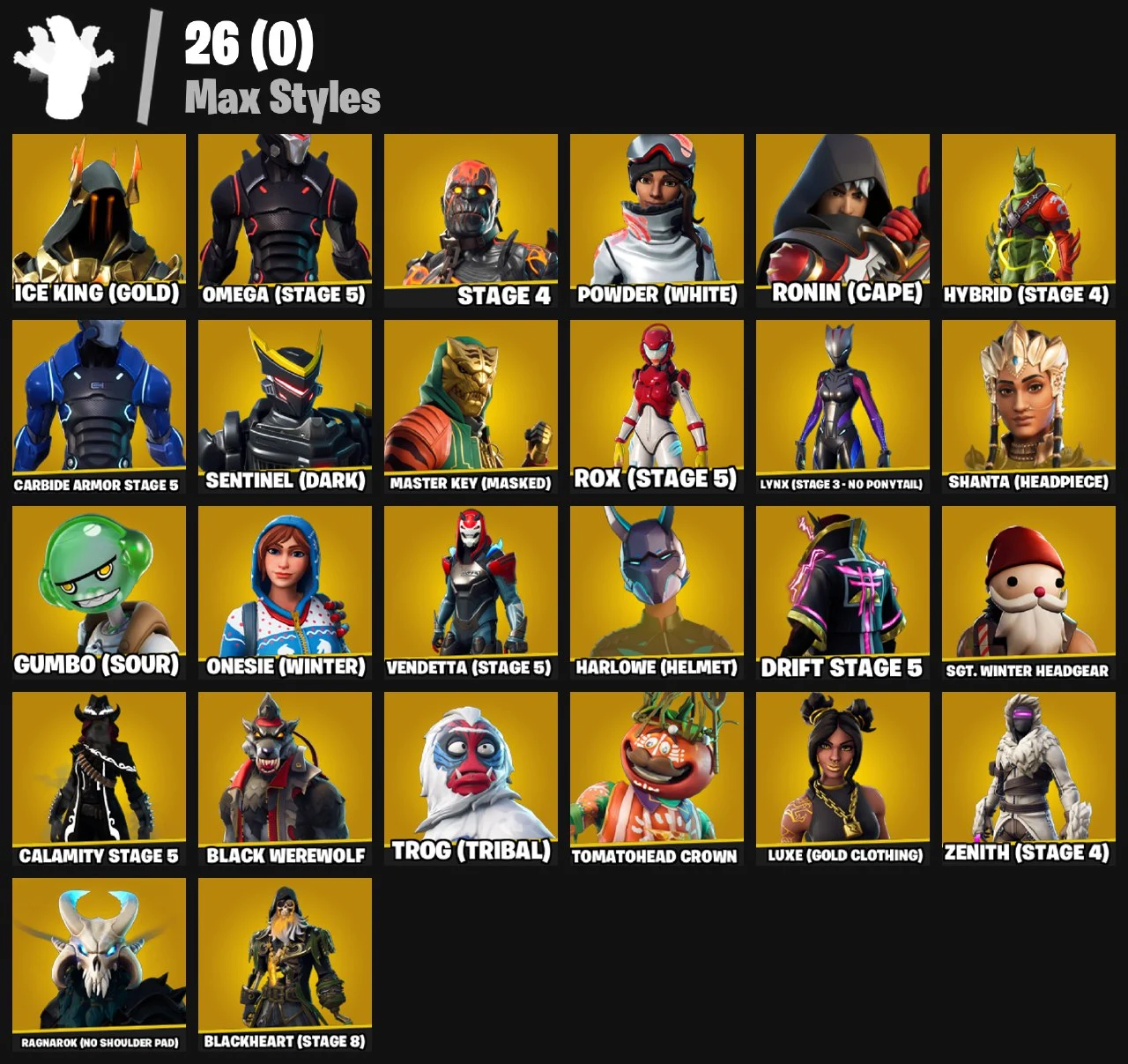 ⭐PC/PS/XB⭐163 Skins + The Reaper + Floss + S2 Knights + Elite Agent⭐Max Omega + Take The L + DRIFT + Calamity + Laguna + CROWBAR+ Vision + Driver + Laugh It Up + The Worm + Black Heart + Red Knight + OG MAKO + Orange Justice + OG STW ⭐