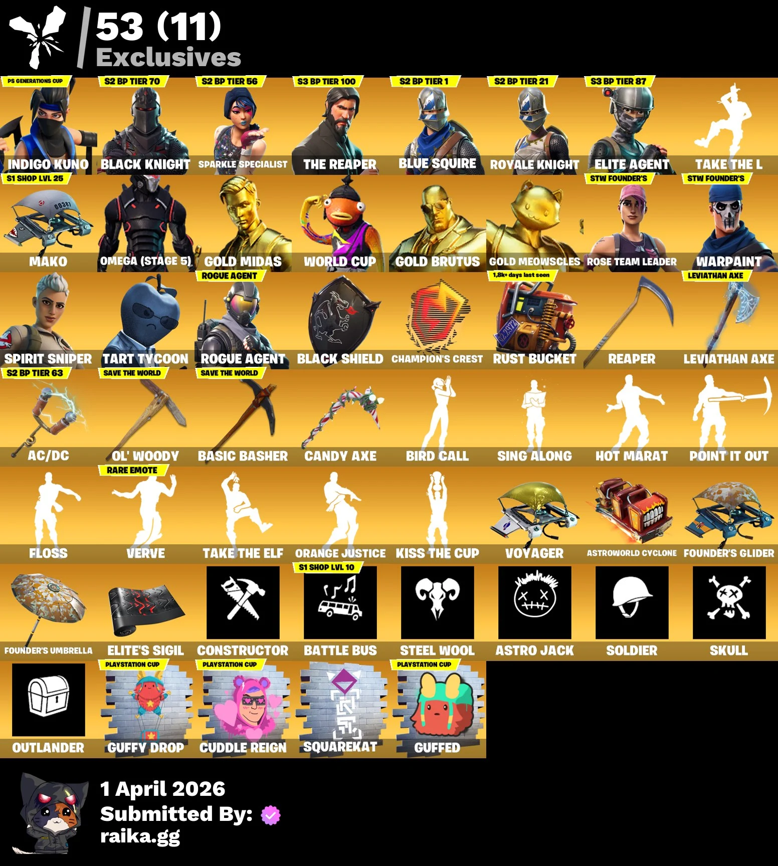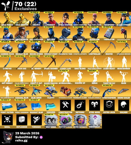 PC/PS/XBOX/SWITCH | 217 Skins | OG STW Deluxe | INDIGO KUNO | Black Knight | Mako | Leviathan Axe | Sparkle Specialist | 1000 VB