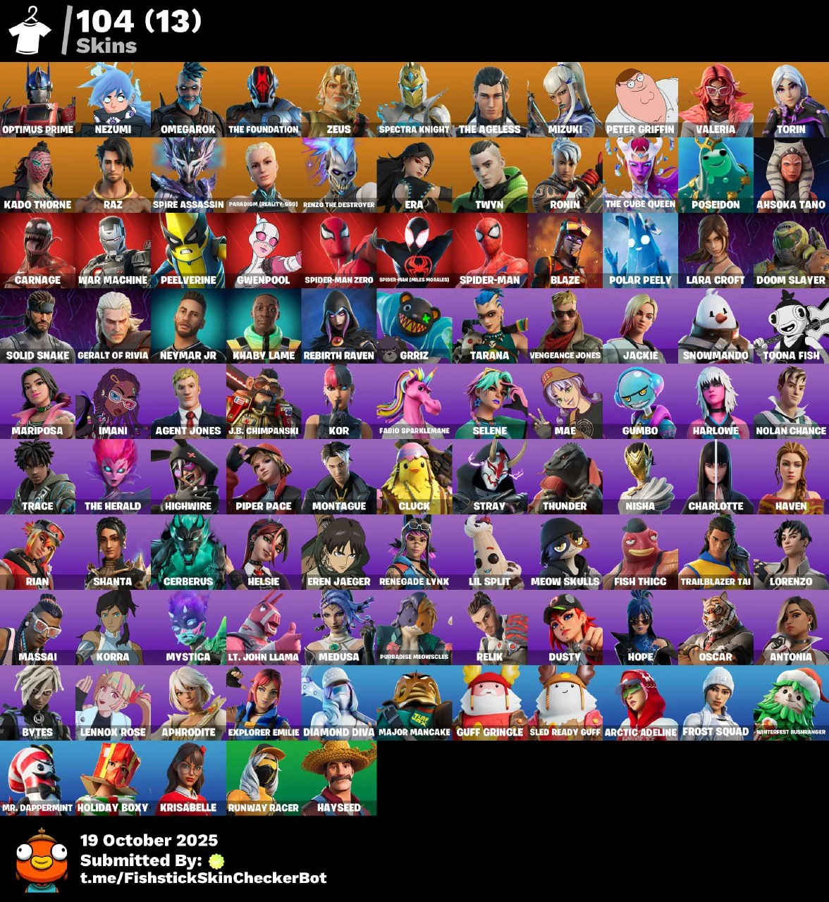[PC/XBOX] 104 skins 48 Max | Optimus Prime | Nezumi | Omegarok | The Foundation | Zeus | Spectra Knight | The Ageless | Mizuki | Peter Griffin | Valeria | Torin | 550 VB