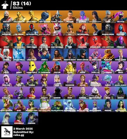 [PC/XBOX] 120 skins | OG STW | Royale Bomber | Gold Brutus | Gold Midas | Gold Meowscles | Tart Tycoon | Blitz | Red Knight | Sentinel | Blackheart|Fade|2100 VB