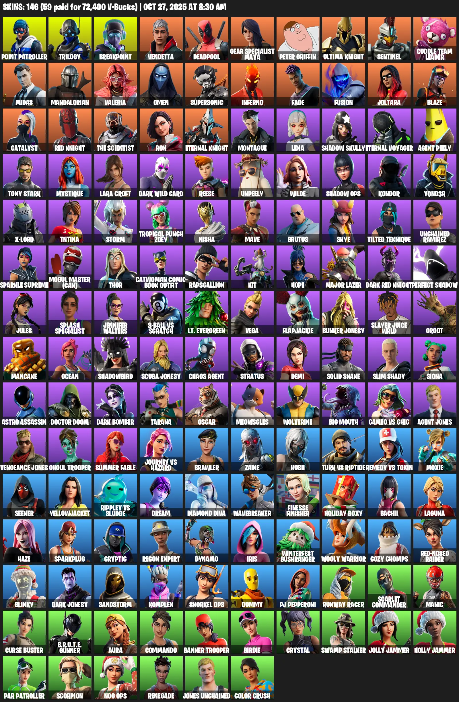 [PC/XBOX] | 146 skins | Leviathan Axe | Lara Croft | Point Patroller | Trilogy | Breakpoint | Vendetta | Deadpool | #MQF3250 | #MBFN