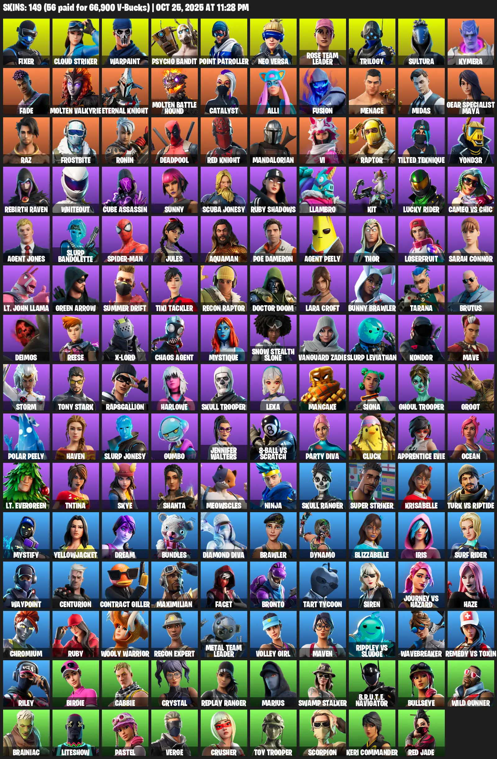 [PC/XBOX] 149 Skins | Fixer | Cloud Striker | Warpaint | Psycho Bandit | Point Patroller | Neo Versa | Rose Team Leader | Trilogy | Sultura | Kymera | Fade | Molten Valkyrie | Eternal Knight | Molten Battle Hound | Catalyst | Alli | Fusion | Menace
