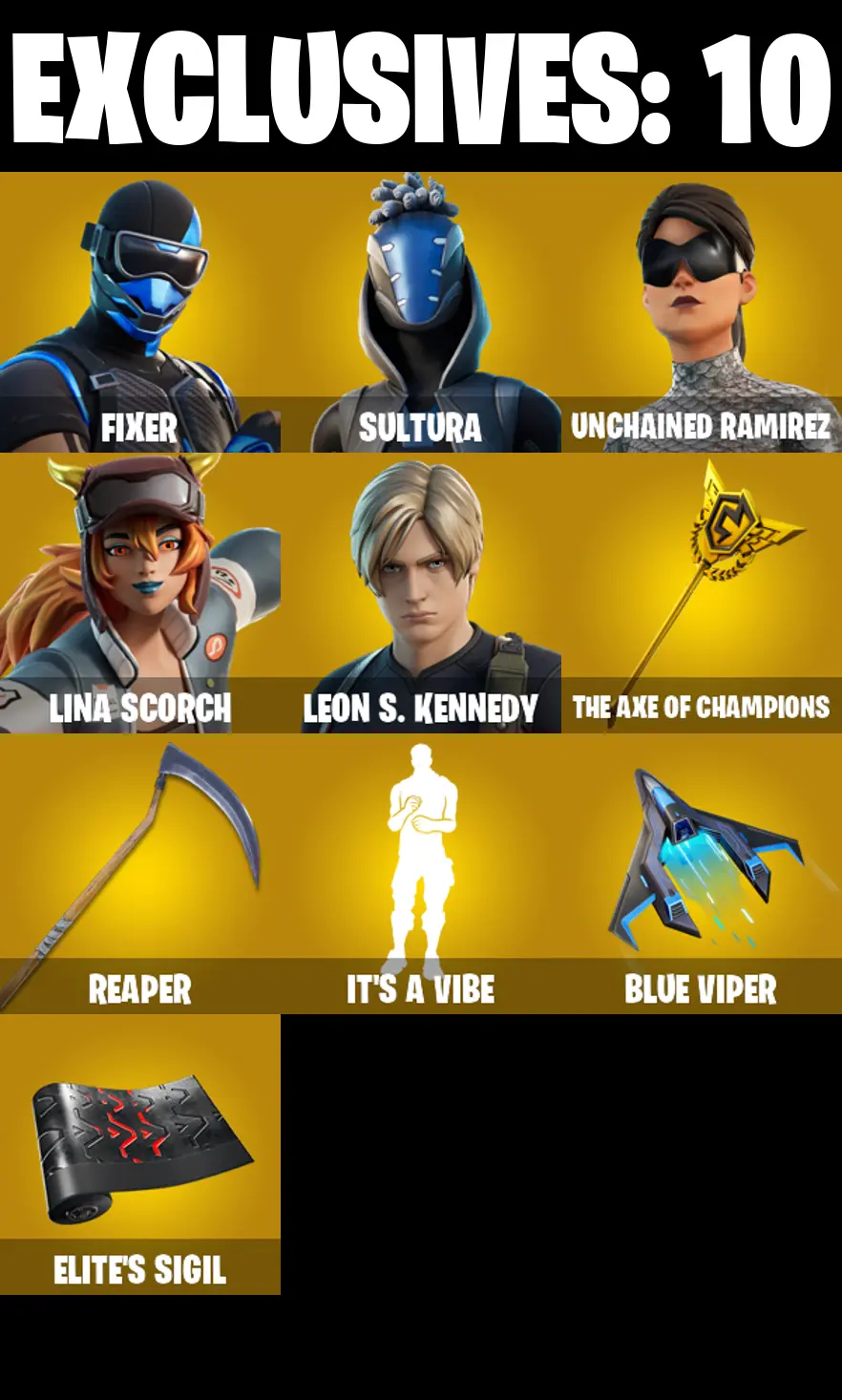 (PC/XBOX) 152 SKINS 🔥 Fixer 🔥 Sultura 🔥 Unchained Ramirez 🔥 Lina Scorch 🔥 Leon S. Kennedy 🔥 The Origin 🔥 Mizuki 🔥 Snap 🔥 Malik 🔥 350 V-Buc PARENTAL CONTROLS