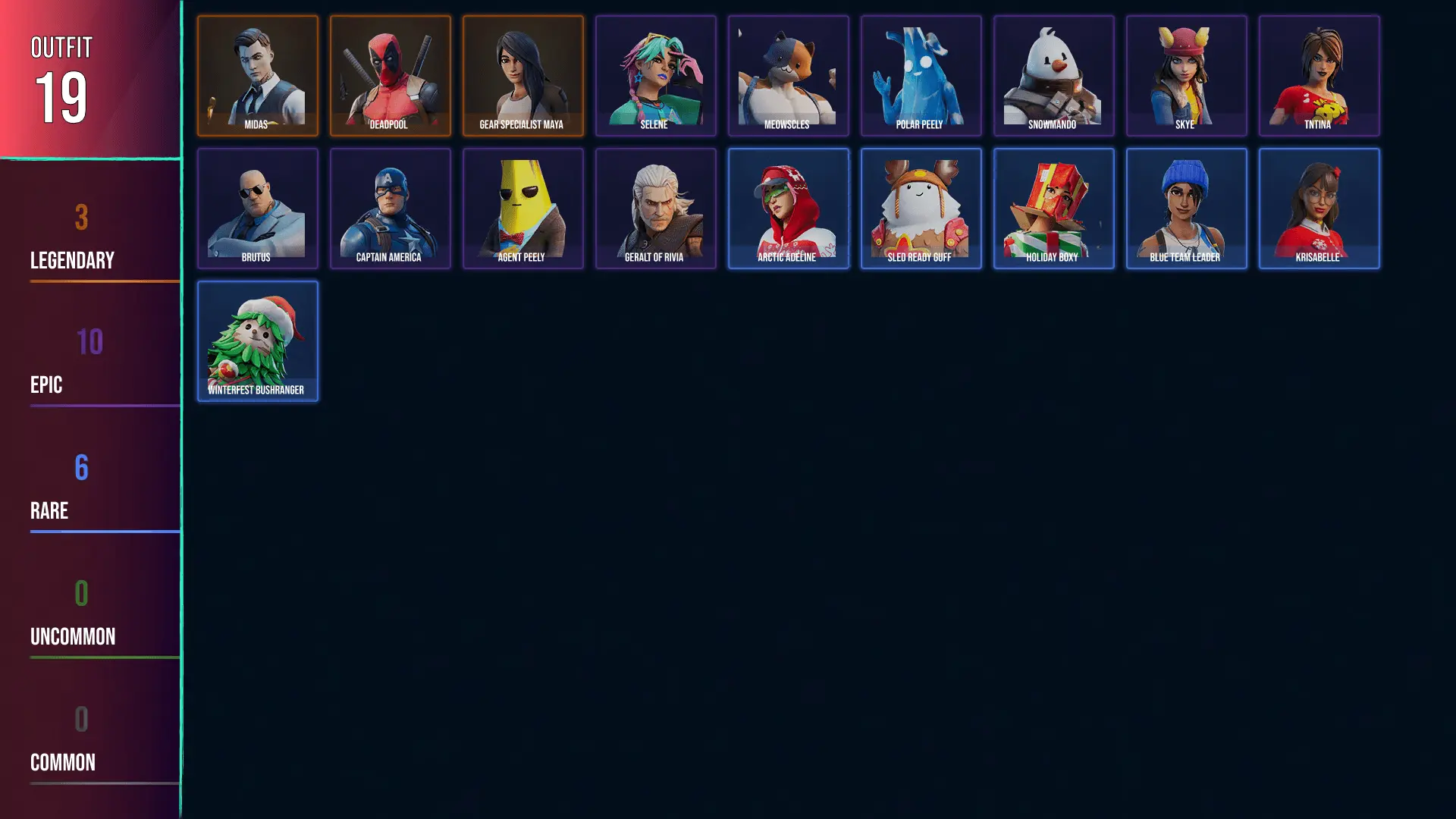 🥑 PC/XBOX 🥑 19 SKINS 🥑 Midas 🥑 Gear Specialist Maya 🥑 Deadpool 🥑 Brutus 🥑 Skye 🥑 Polar Peely 🥑 Agent Peely 🥑 TNTina 🥑 Captain America 🥑 Meowscles 🥑 Snowmando 🥑 Selene 🥑 300 VBUCKS 🥑 FdlFT 🥑