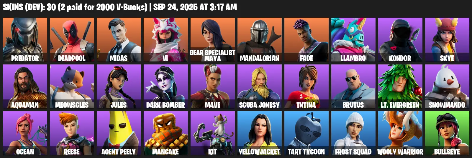 [PC/XBOX] | 30 skins | Predator | Deadpool | Midas | Vi | Gear Specialist Maya | Mandalorian | Fade | Llambro | Kondor | Skye | #GDS6561 | #MBFN