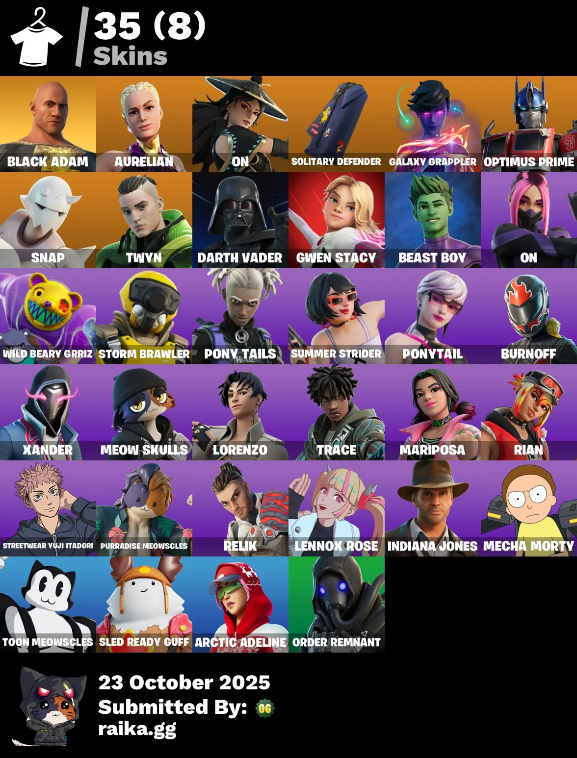 [PC/XBOX] 35 skins | Black Adam | Optimus Prime | Aurelian | On | Solitary Defender | Galaxy Grappler | Snap mssh844