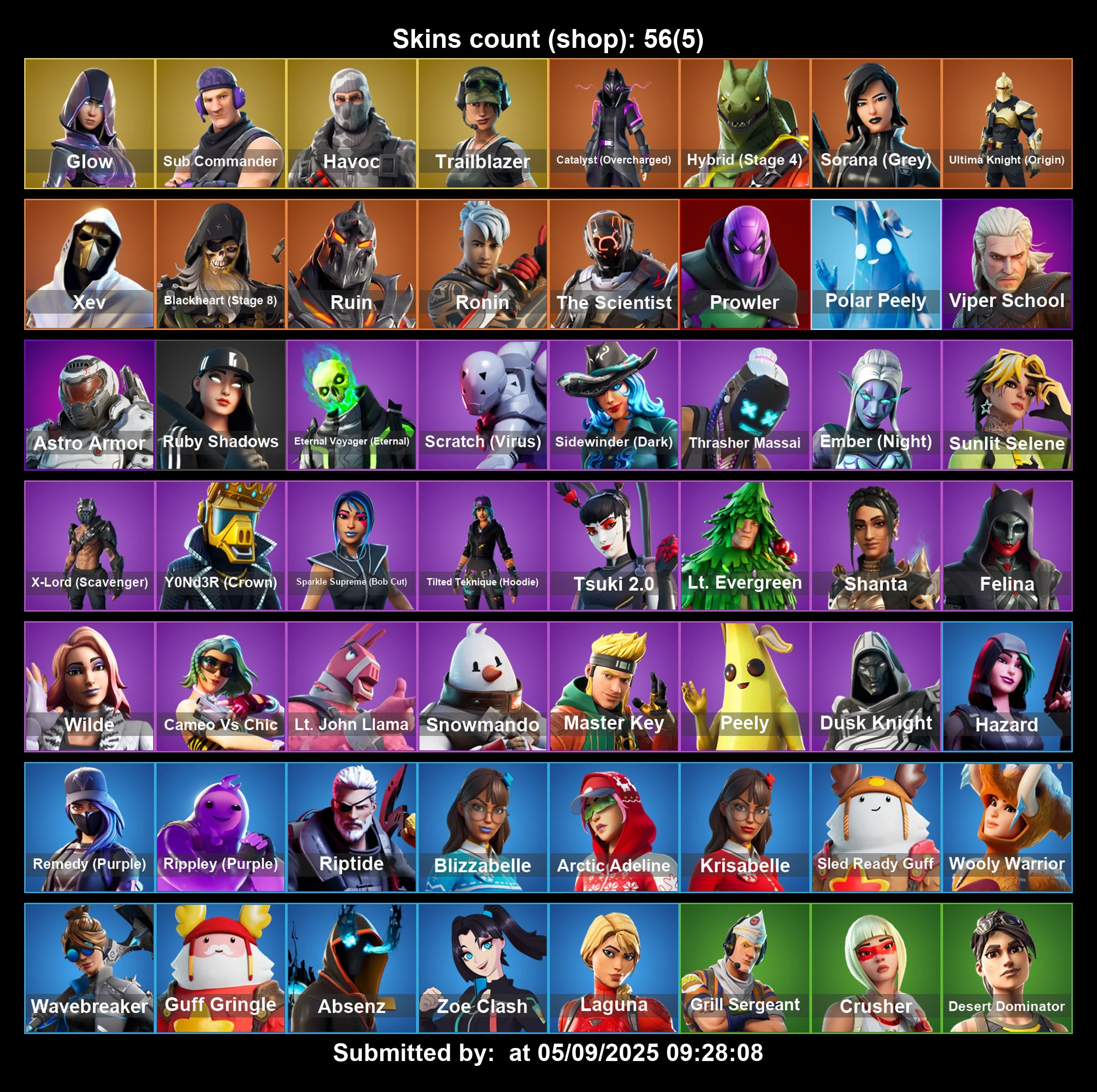 [PC/XBOX] 56 skins | Glow | Sub Commander | Havoc | Trailblazer | Catalyst (Overcharged) | Hybrid (Stage 4) | Sorana (Grey) | Ultima Knight (Origin) | Xev