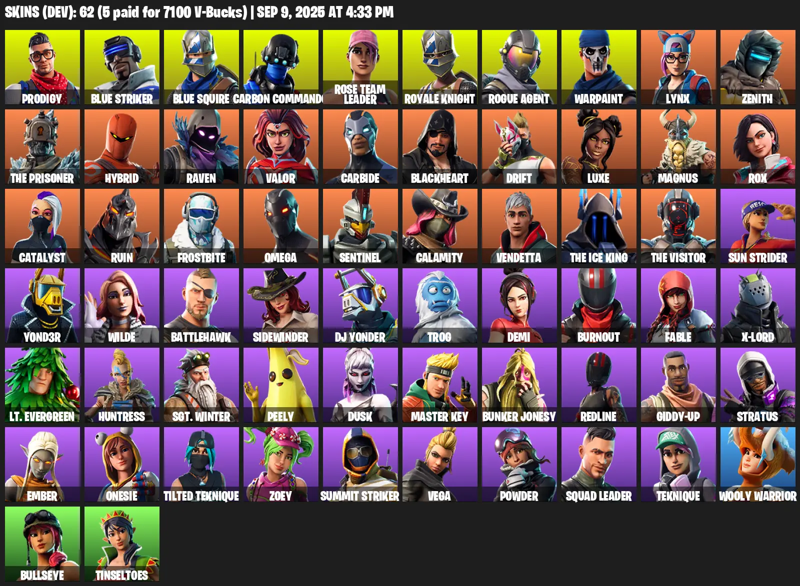 [PC/XBOX] | 62 skins | OG STW | Royale Knight | Blue Squire | Omega | Prodigy | Blue Striker | Carbon Commando | Rose Team Leader | #MMW0474 | #MBFN