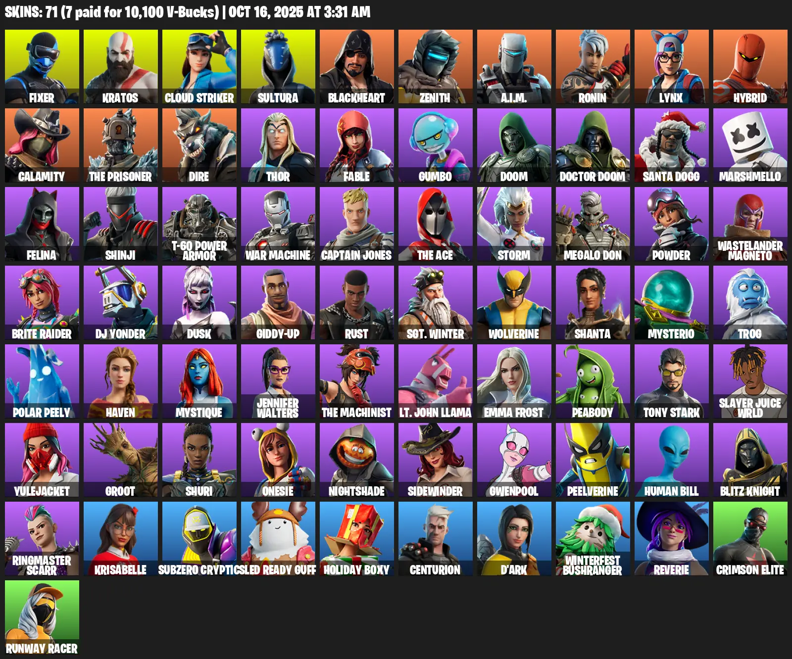 [PC/XBOX] | 71 skins | Leviathan Axe | Fixer | Kratos | Cloud Striker | Sultura | Blackheart | Zenith | A.I.M. | Ronin | Lynx | #MSY3802 | #MBFN