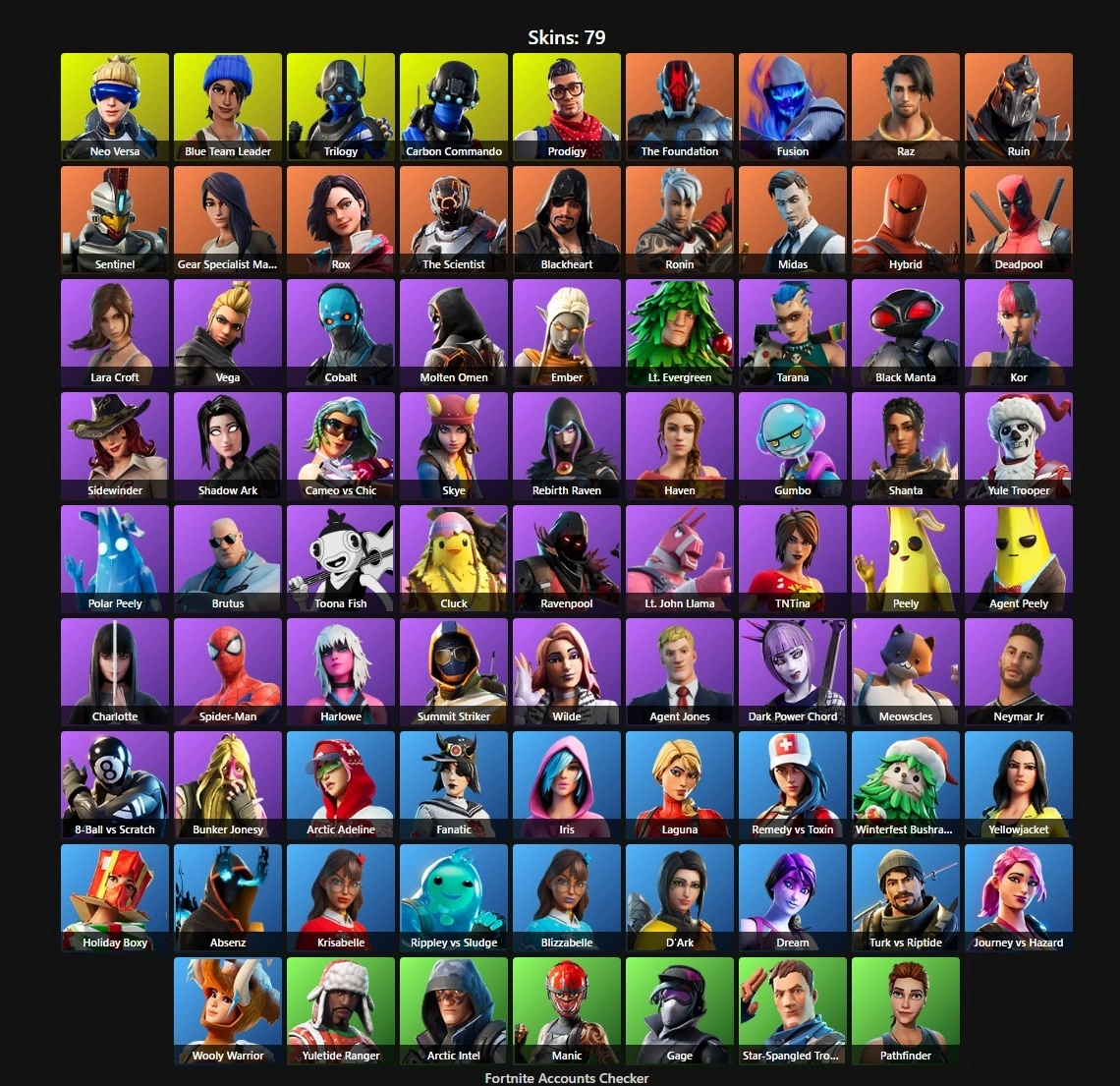 PC/XBOX 79 Skins⚡ | Midas | Deadpool | Lara Croft | Peely | Neo Versa | Blue Team Leader | Trilogy | Carbon Commando | Prodigy | The Foundation | Fusion