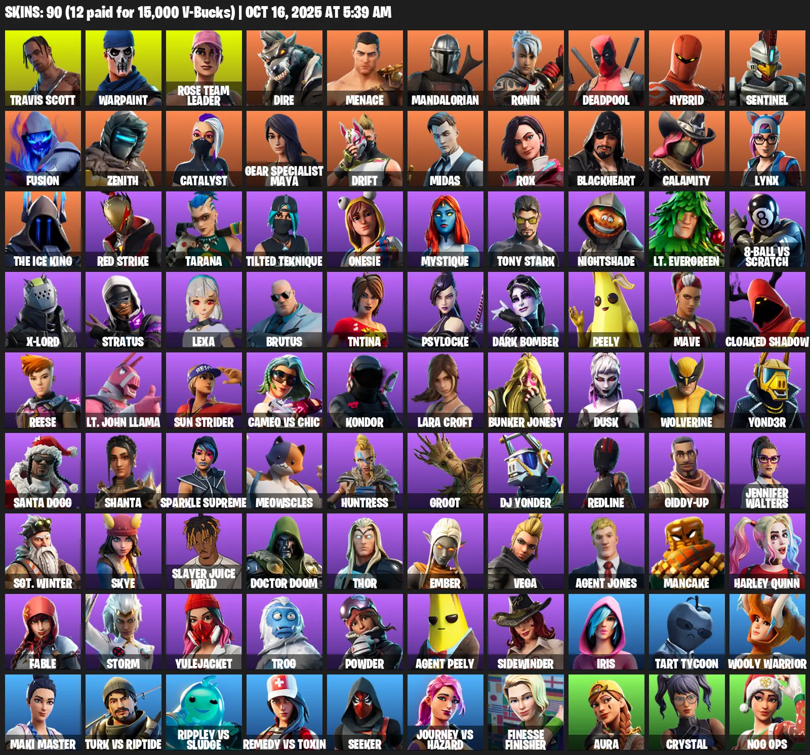 [PC/XBOX] | 90 skins | OG STW | Travis Scott | Lara Croft | Warpaint | Rose Team Leader | Dire | Menace | Mandalorian | Ronin | #VPR2052 | #MBFN