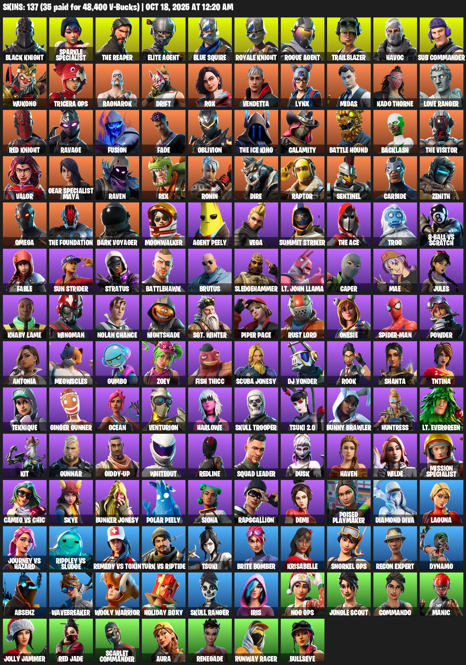 [PC/XBOX/PSN] 137 Skins | Black Knight | Sparkle Specialist | The Reaper | Elite Agent | Blue Squire | Royale Knight | Rogue Agent | Trailblazer | Havoc | Sub Commander | Wukong | Tricera Ops | Ragnarok | Drift | Rox | Vendetta | Lynx | Midas