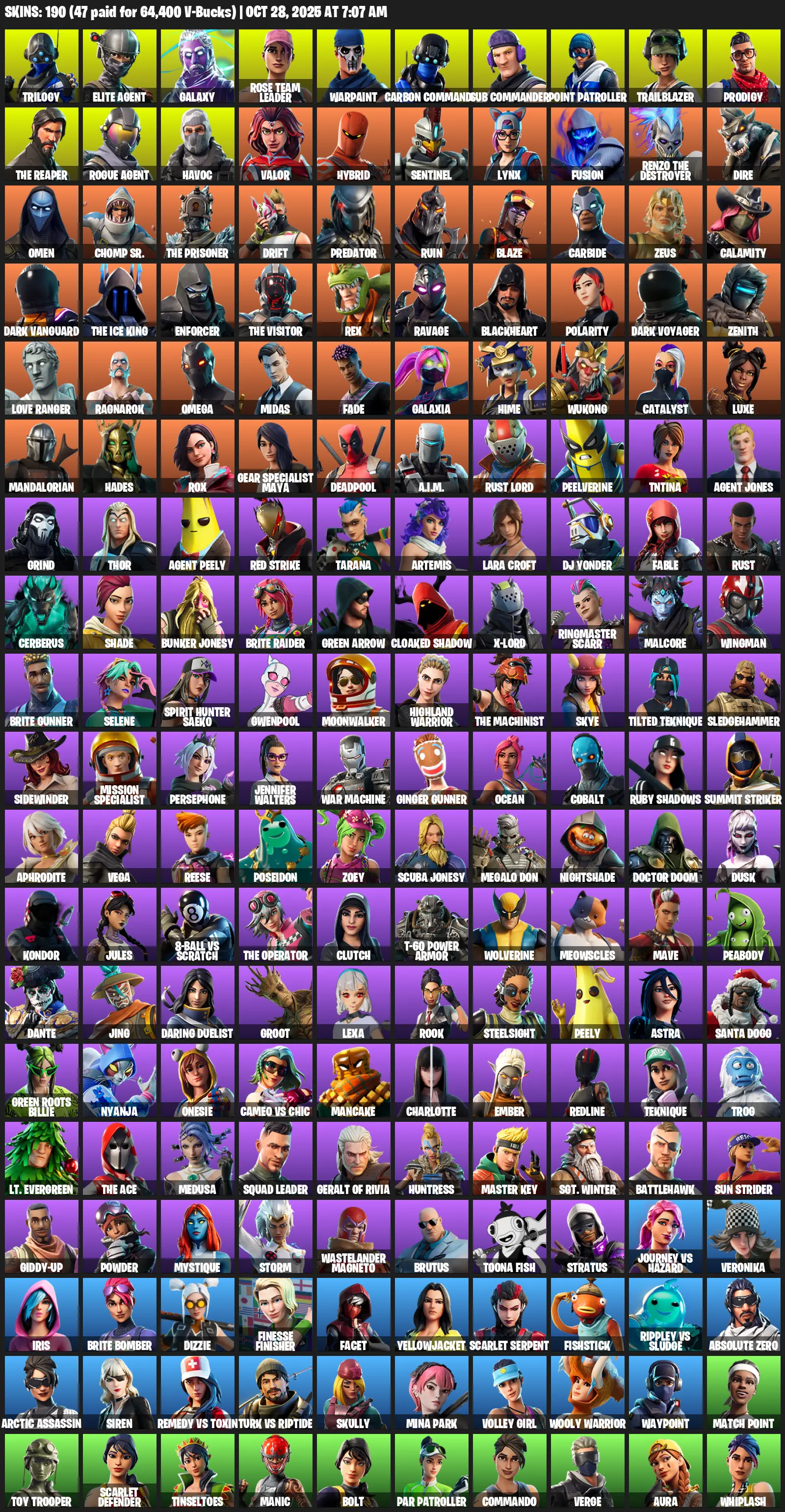 [PC/XBOX/PSN] 190 Skins | Trilogy | Elite Agent | Galaxy | Rose Team Leader | Warpaint | Carbon Commando | Sub Commander | Point Patroller | Trailblazer | Prodigy | The Reaper | Rogue Agent | Havoc | Valor | Hybrid | Sentinel | Lynx | Fusion
