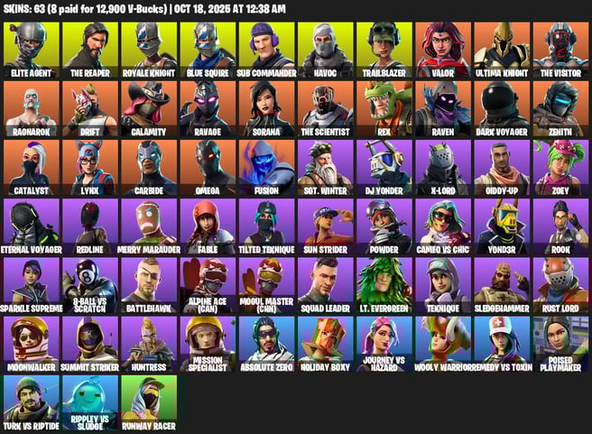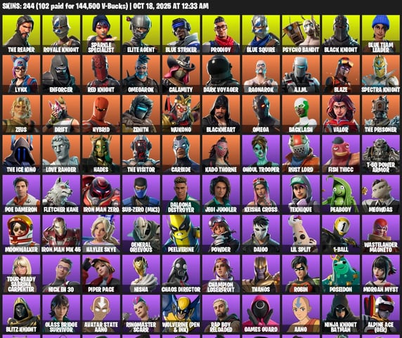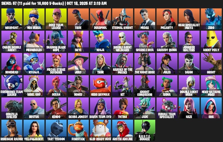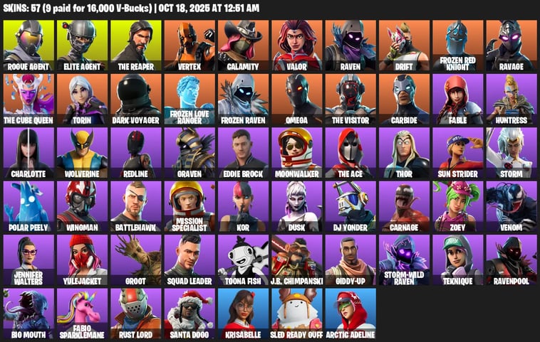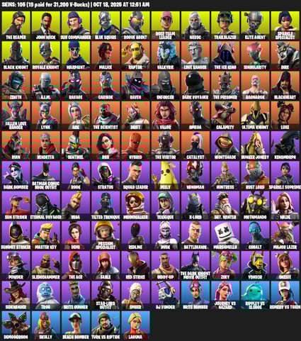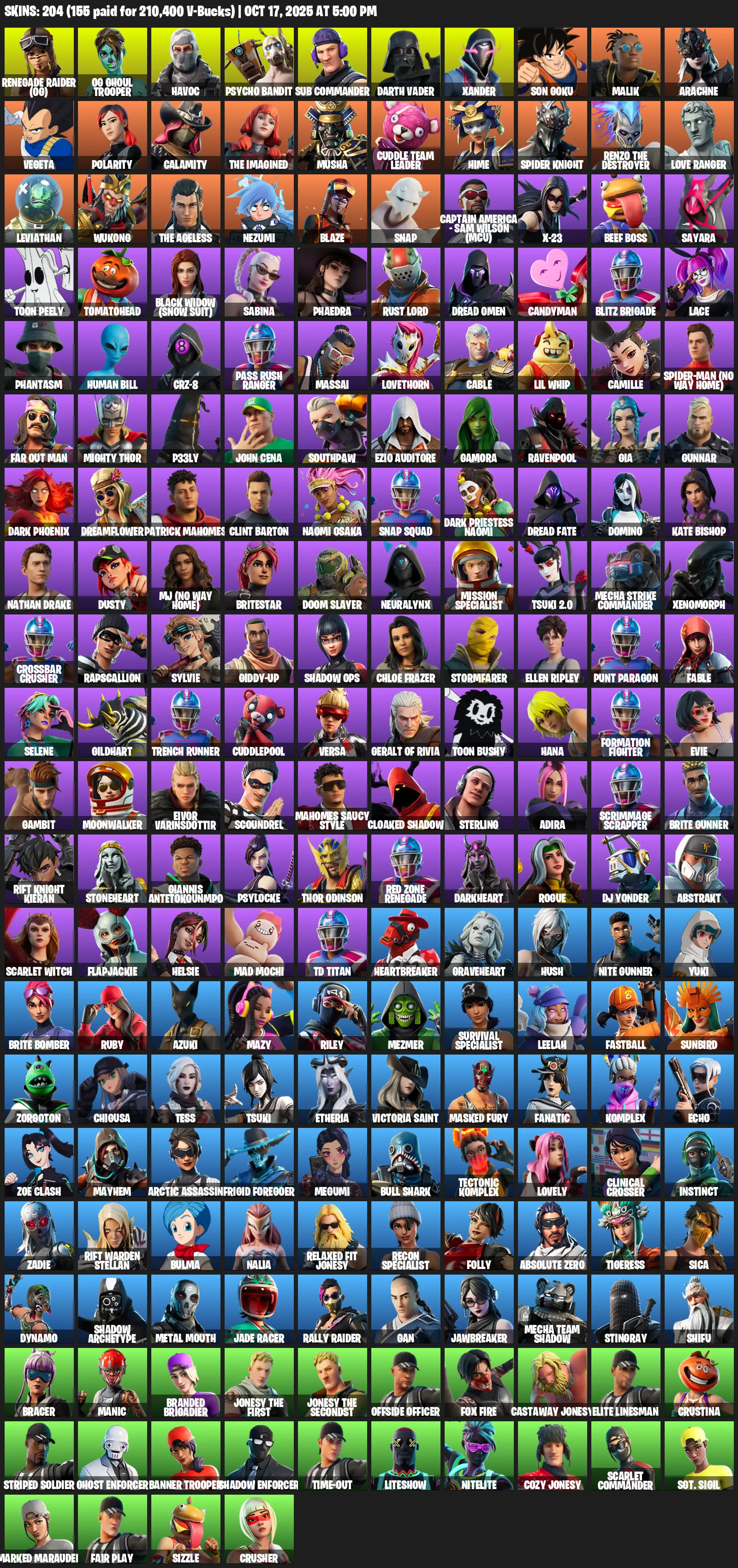 [PC/XBOX/PSN] 204 Skins | Renegade Raider (OG) | OG Ghoul Trooper | Havoc | Psycho Bandit | Sub Commander | Darth Vader | Xander | Son Goku | Malik | Arachne | Vegeta | Polarity | Calamity | The Imagined | Musha | Cuddle Team Leader | Hime | Spider Knight