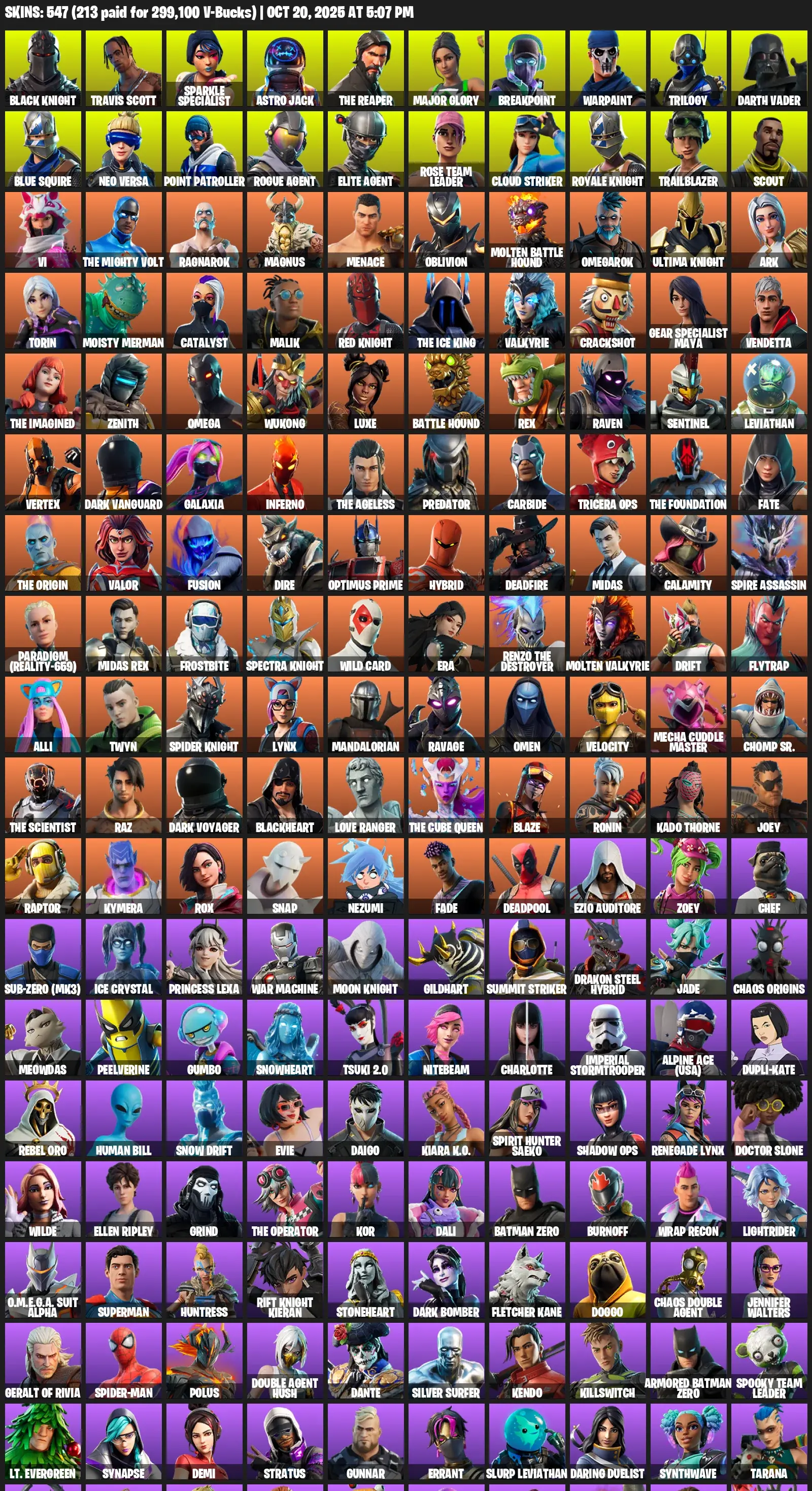 [PC/XBOX/PSN] 547 Skins | Black Knight | Travis Scott | Sparkle Specialist | Astro Jack | The Reaper | Major Glory | Breakpoint | Warpaint | Trilogy | Darth Vader | Blue Squire | Neo Versa | Point Patroller | Rogue Agent | Elite Agent | Rose Team Leader