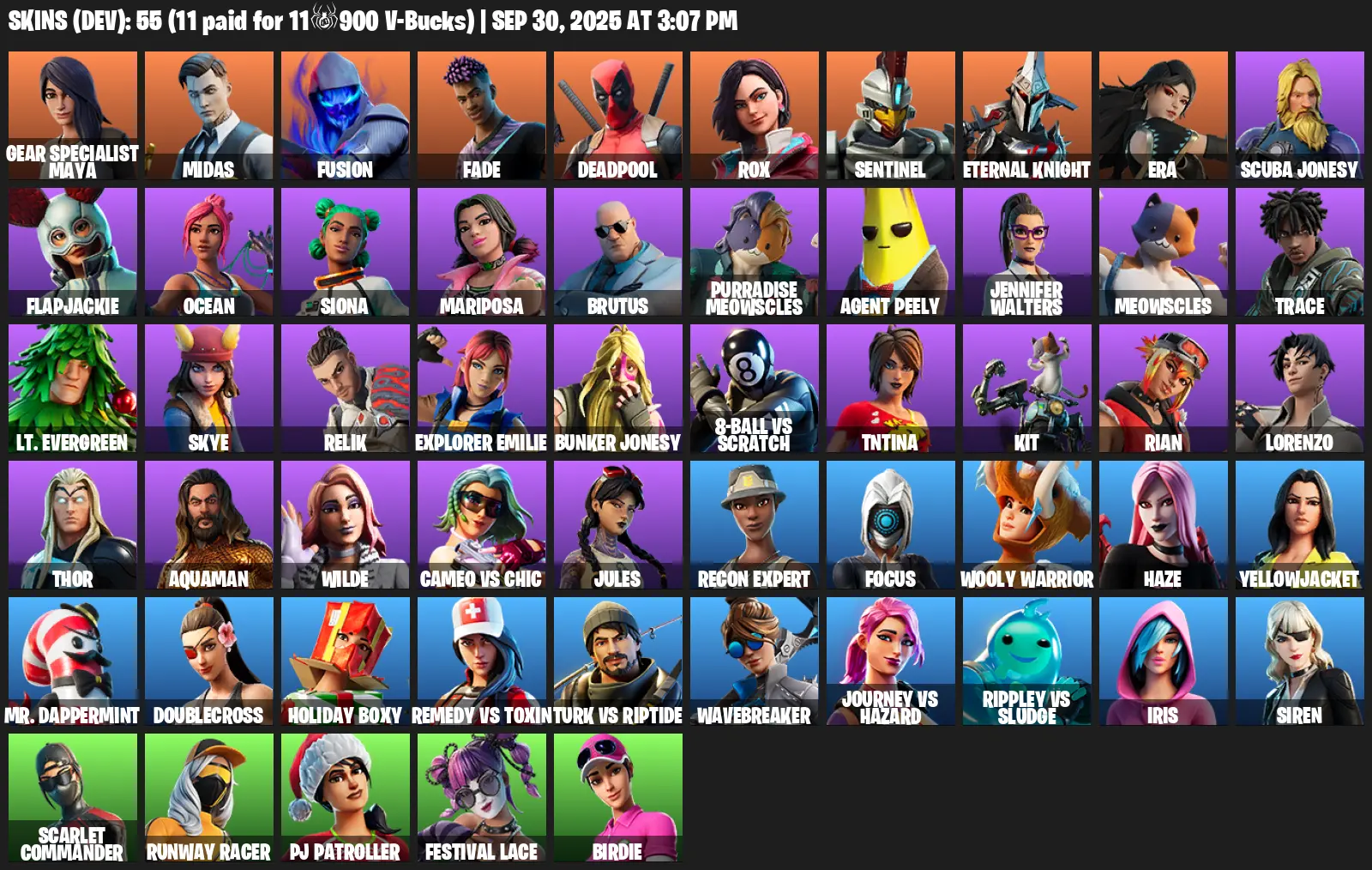 PC/XBOX/PSN 55 Skins⚡ | Midas | Deadpool | Gear Specialist Maya | Fusion | Fade | Rox | Sentinel | Eternal Knight | Era | Scuba Jonesy | Flapjackie | Ocean