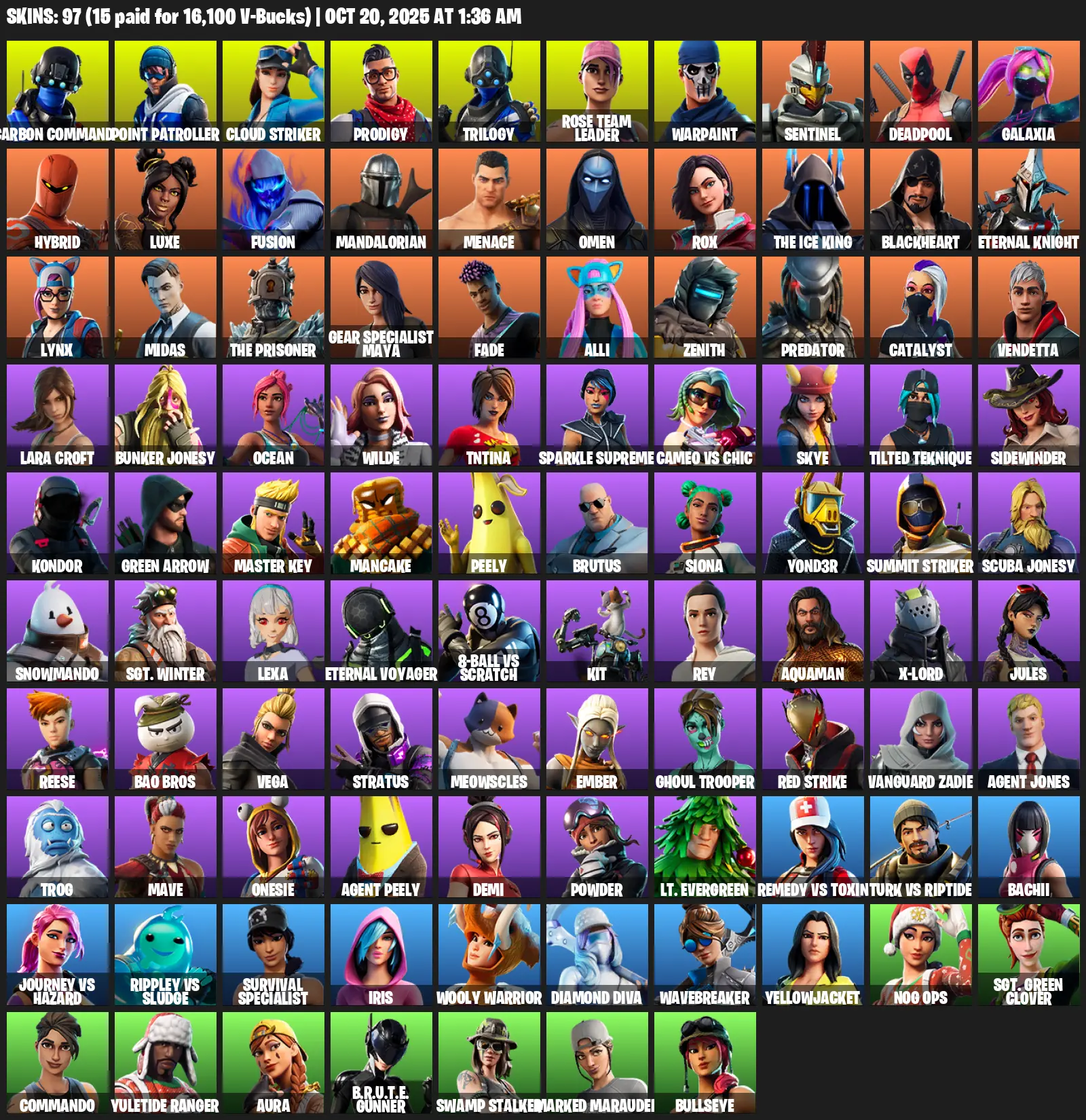 [PC/XBOX/PSN] 97 Skins | Carbon Commando | Point Patroller | Cloud Striker | Prodigy | Trilogy | Rose Team Leader | Warpaint | Sentinel | Deadpool | Galaxia | Hybrid | Luxe | Fusion | Mandalorian | Menace | Omen | Rox | The Ice King | Blackheart