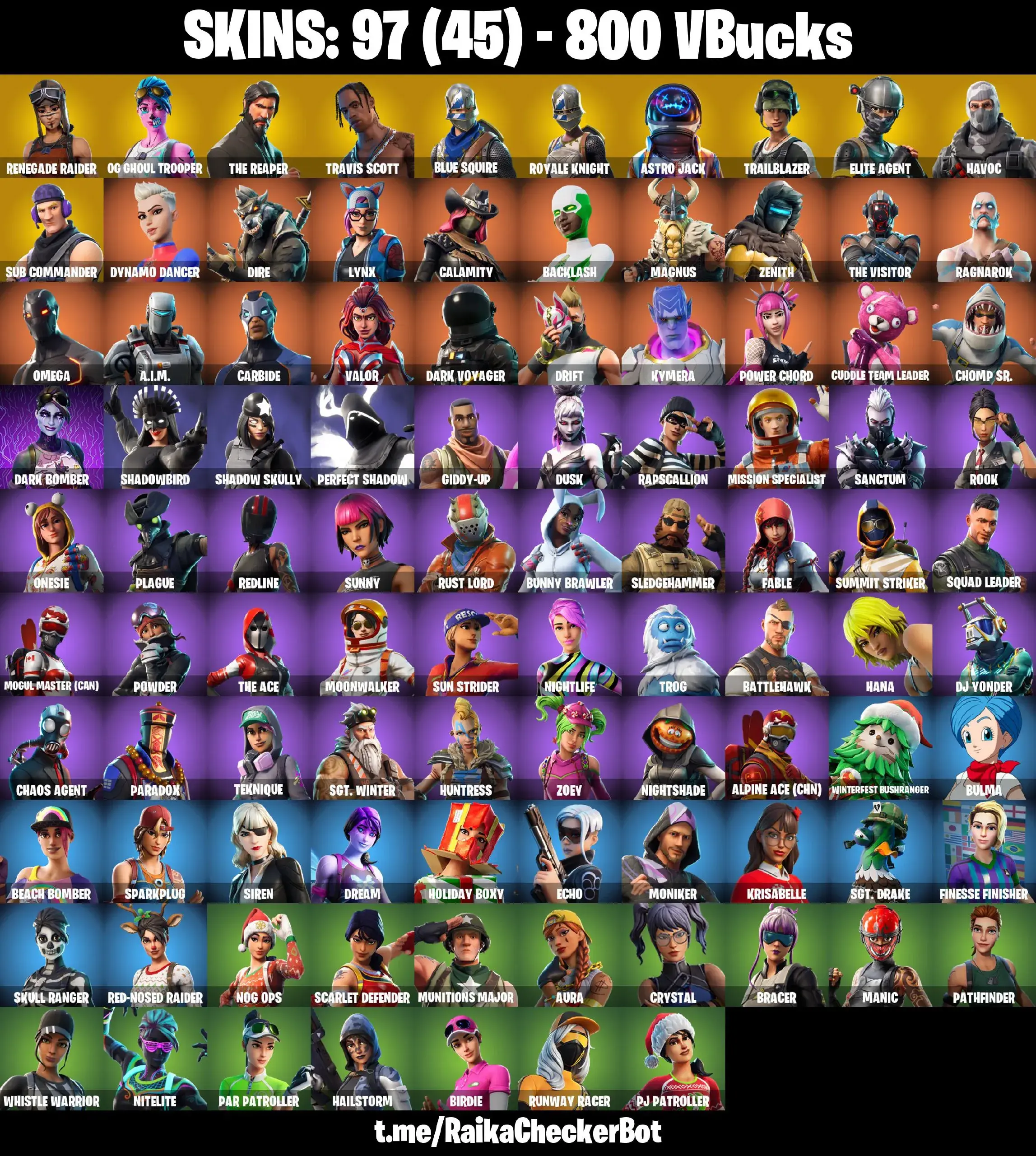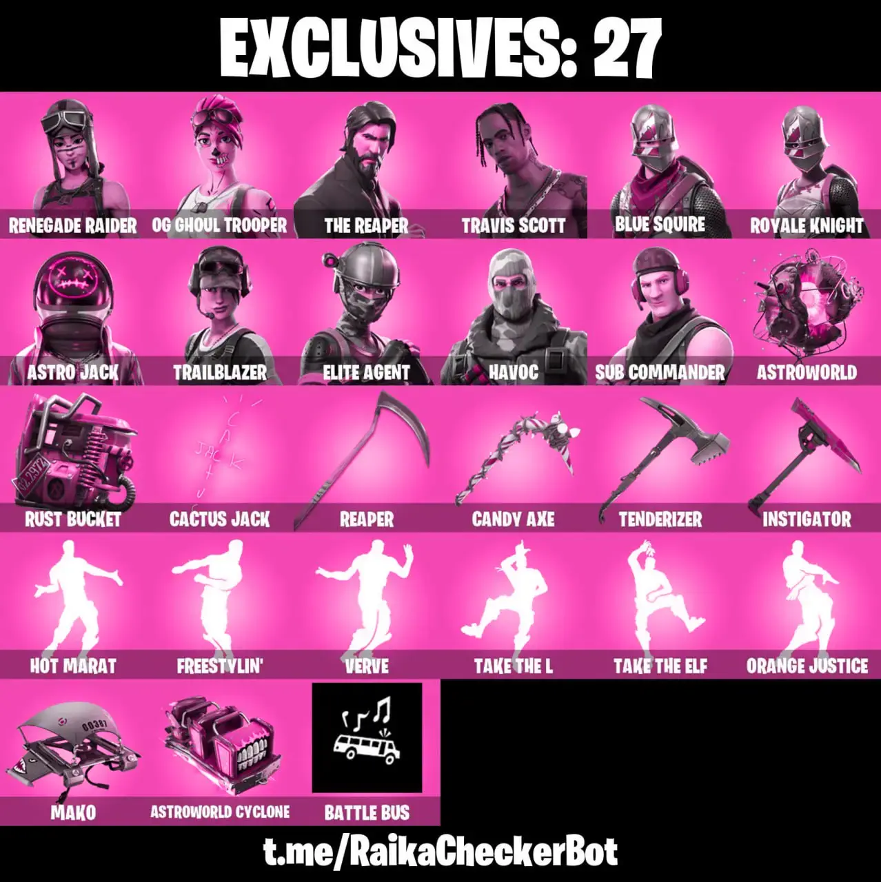 [PSN/PC/XBOX] 🍀 97 skins | (Pink) OG Ghoul Troope ☘️ OG Renegade Raider 🍀 Floss ☘️ The Reaper 🍃 Travis Scott 🍀 Blue Squire 🎩 Royale Knight 🌈 Astro Jack 🍀 Trailblazer | 800 VB