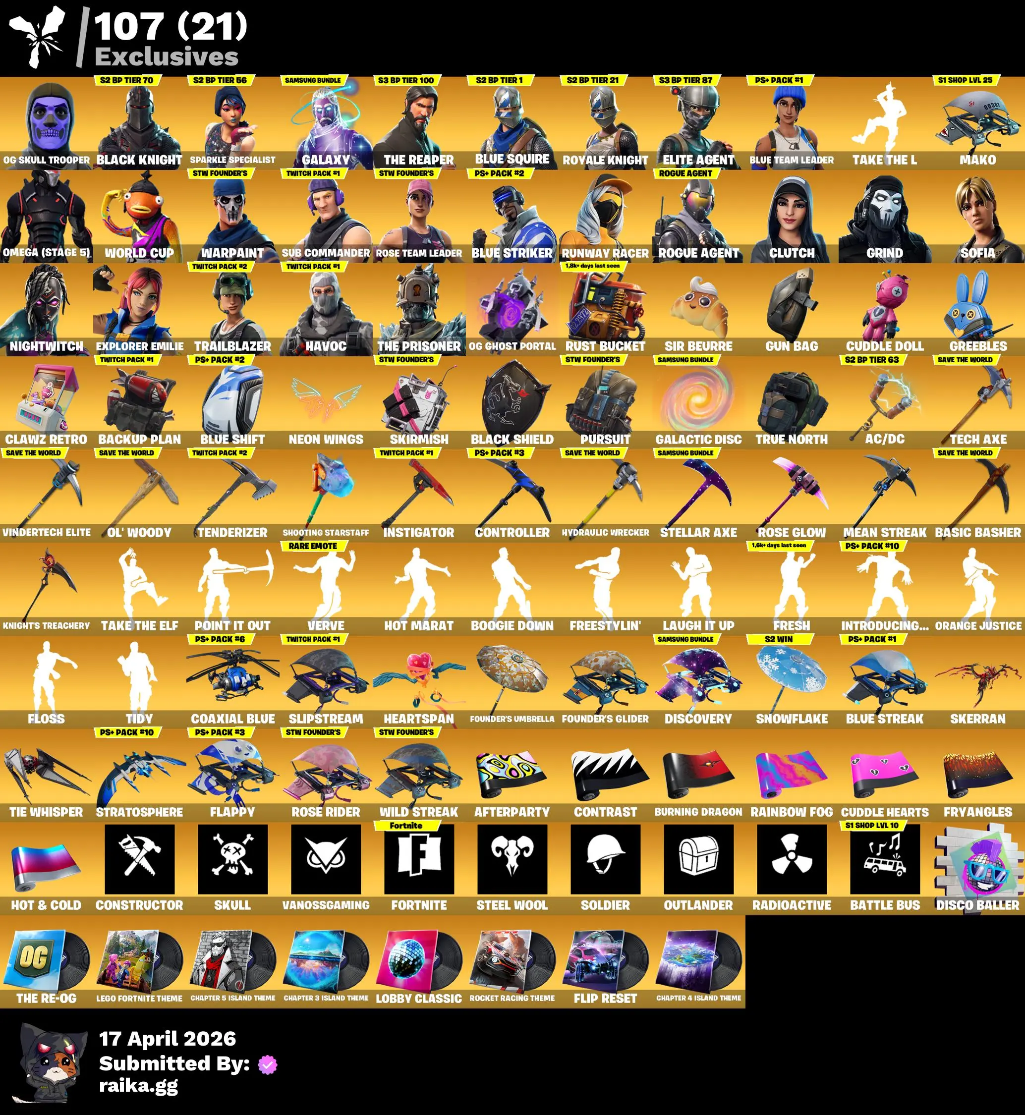 RAREST DEAL ๐ Original Email ๐ฅ PC/SWITCH ๐ 178 Skins | OG STW | Og Skull Trooper | Black Knight | Galaxy | Sparkle Specialist | The Reaper | Blue Squire | Royale Knight | Elite Agent | Blue Team Leader | Omega (stage 5) | 550 VB