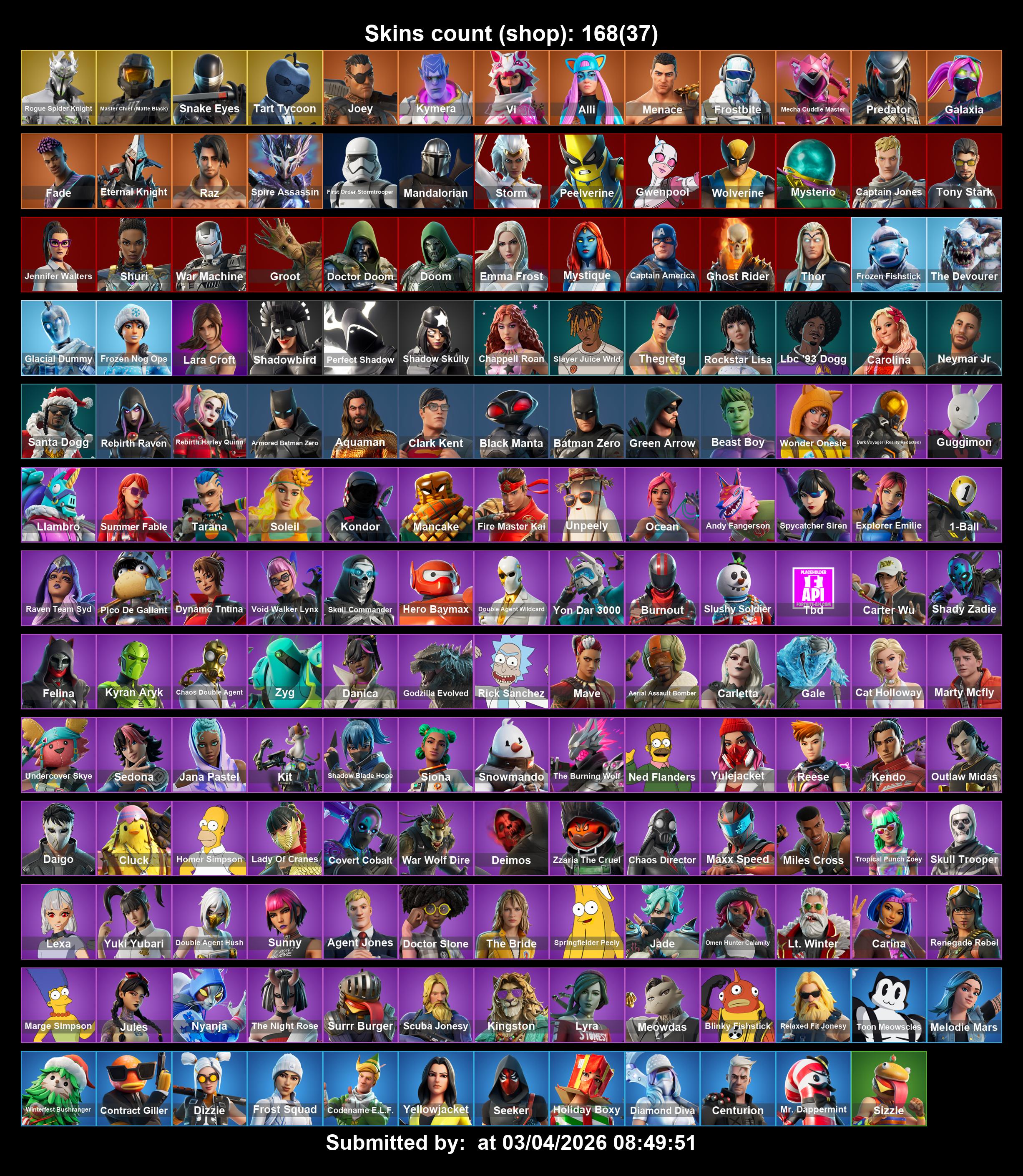 #SM4480 [PC/XBOX] 168 skins | Rogue Spider Knight | Master Chief (Matte Black) | Snake Eyes | Tart Tycoon | Joey | Kymera | Vi | Alli | Menace | Frostbite