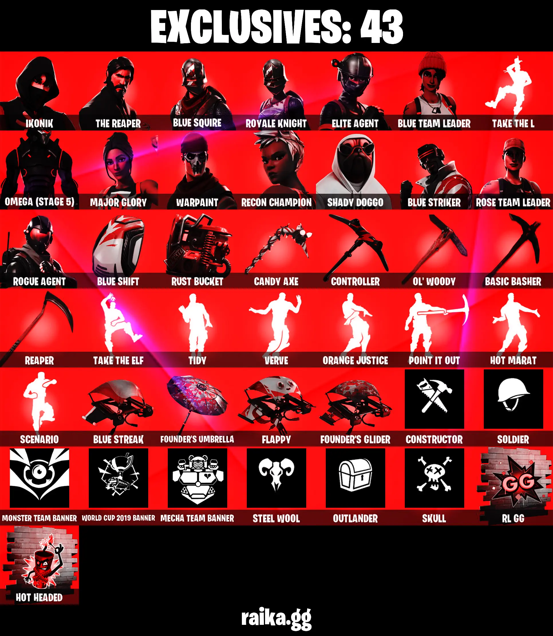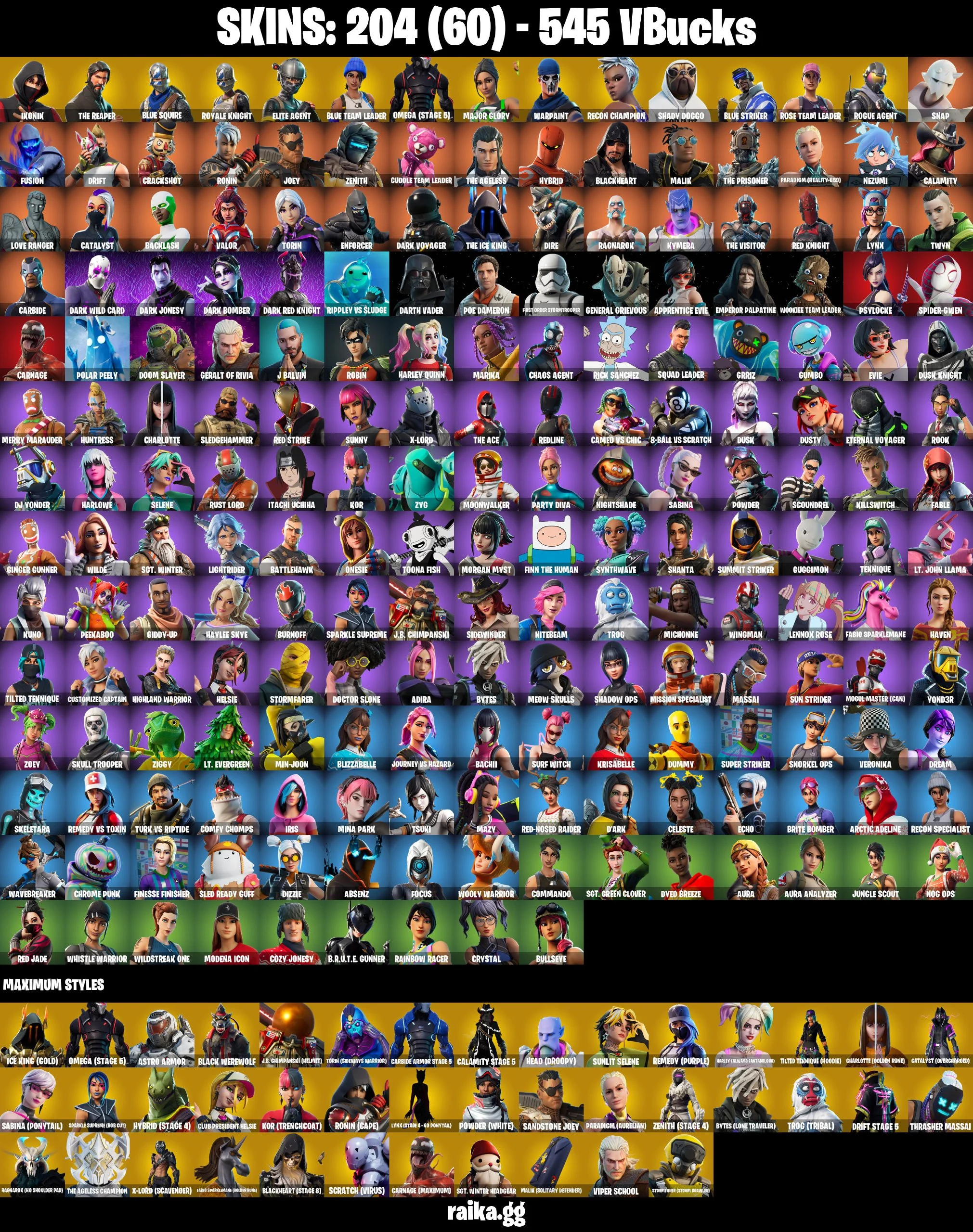 πβ¨STACKED OG BUNDLEβ¨π 204 SKINS π IKONIK π THE REAPER π BLUE SQUIRE π ROYALE KNIGHT π OG STW π ELITE AGENT π BLUE TEAM LEADER π TAKE THE L π THE WORM π BEST MATES π SKULL TROOPER π REAPER π OMEGA (STAGE 5) π 545 VBUCKS β‘οΈPC/PSN/SWITCHβ‘οΈ
