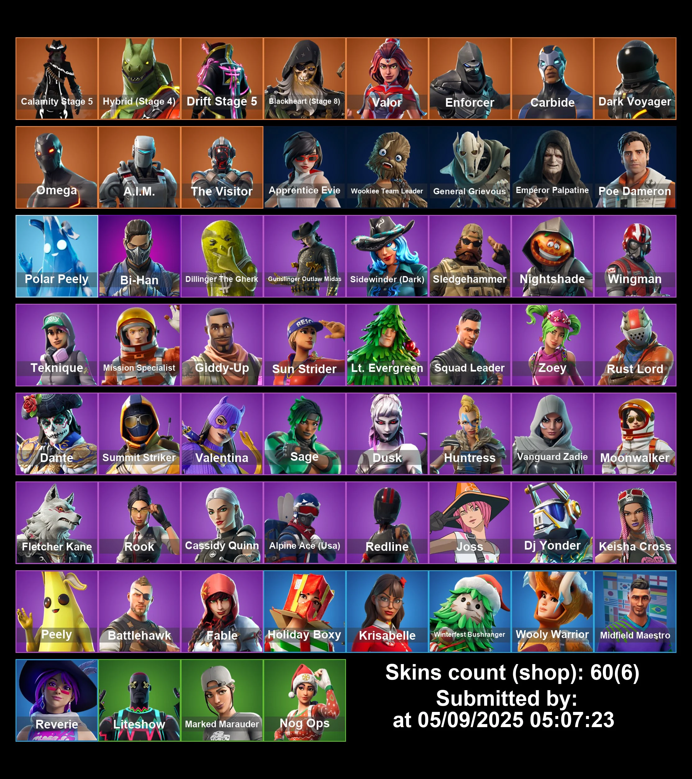 [XBOX/PC] 60 skins | Calamity Stage 5 | Hybrid (Stage 4) | Drift Stage 5 | Blackheart (Stage 8) | Valor | Enforcer | Carbide | Dark Voyager | Omega | Full Email Access