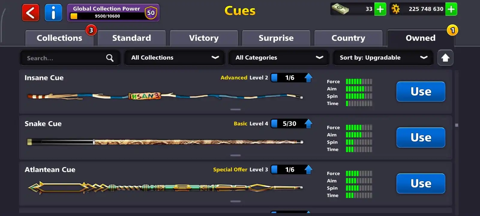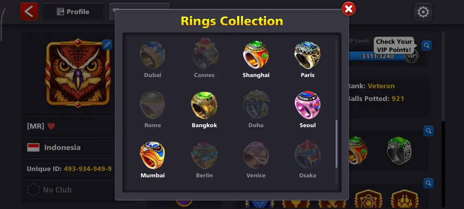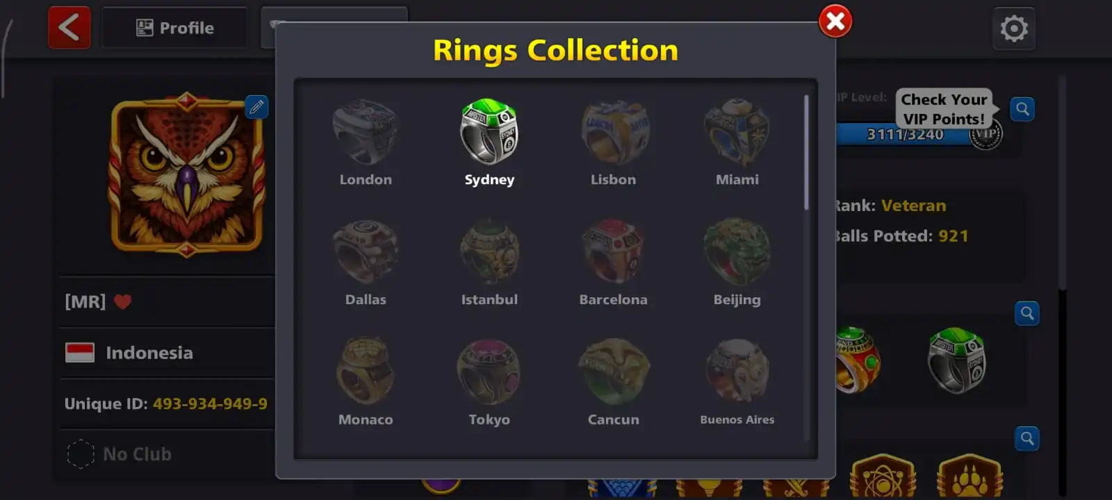 cheapestđ„level 59đ„cues 7 legendaryđ„coins 225Mđ„rare ringsđ„full access accountđ„