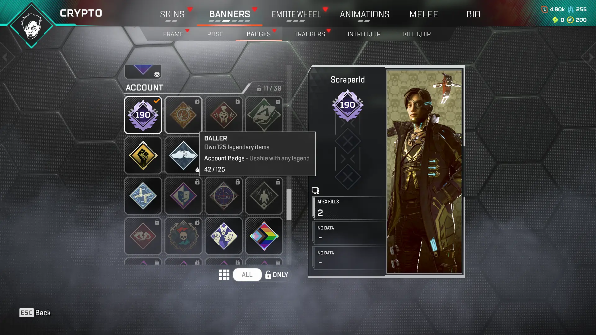 Apex Legends[PC/PSN] 190 lvl/ 42 Legendary/ Cyber Shock/200 Apex Coin/ mssh470